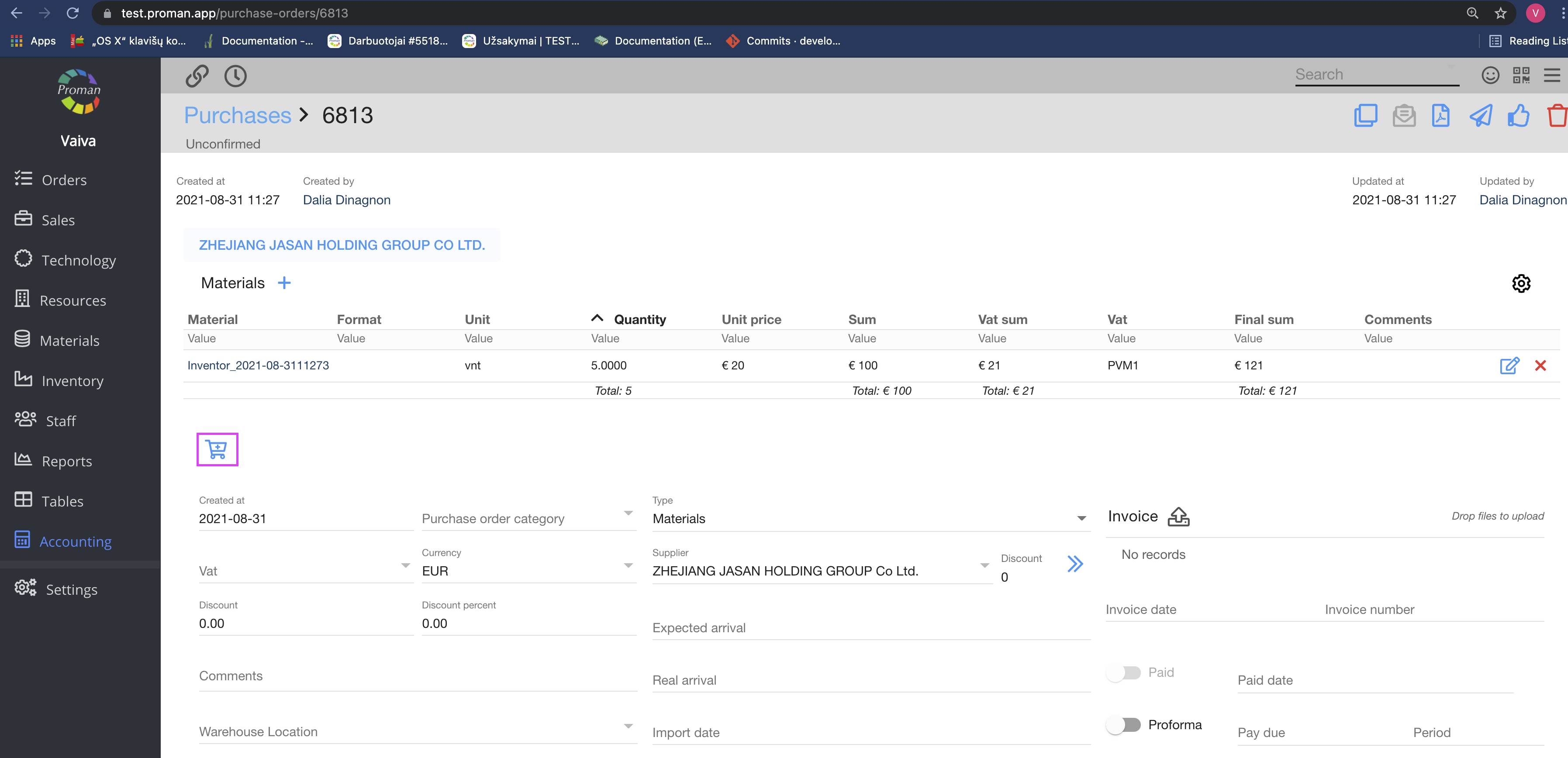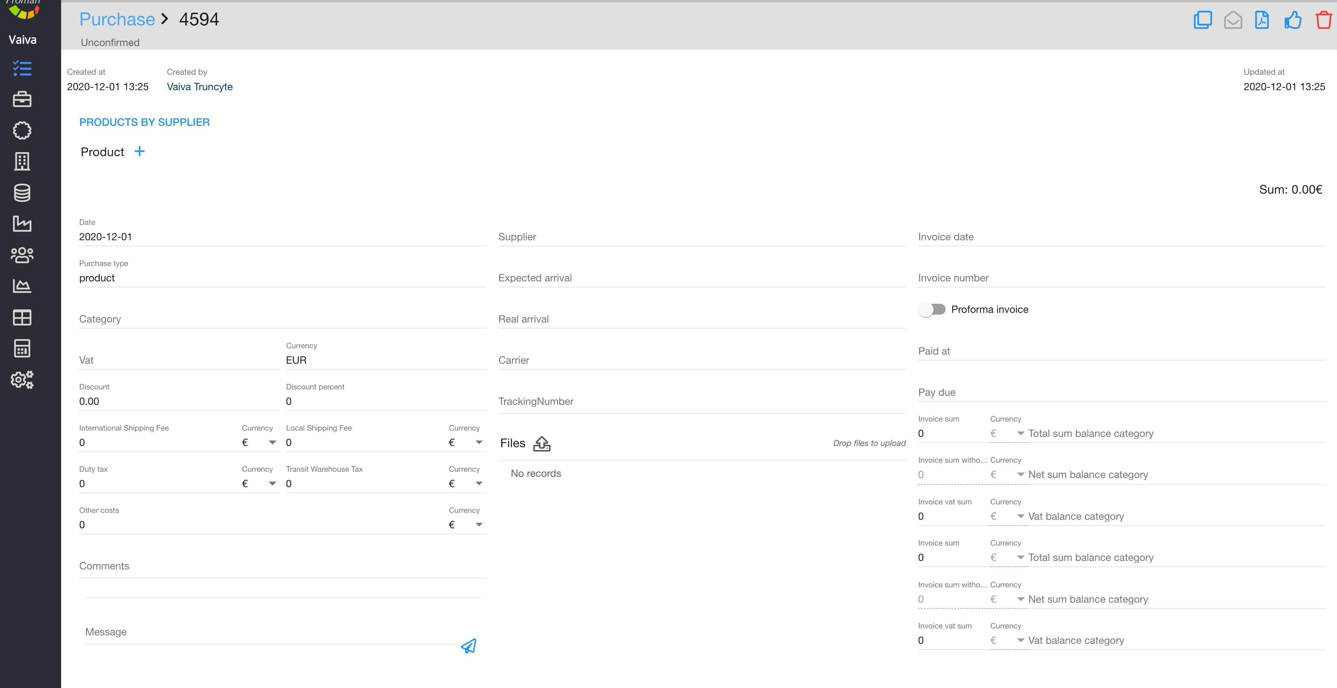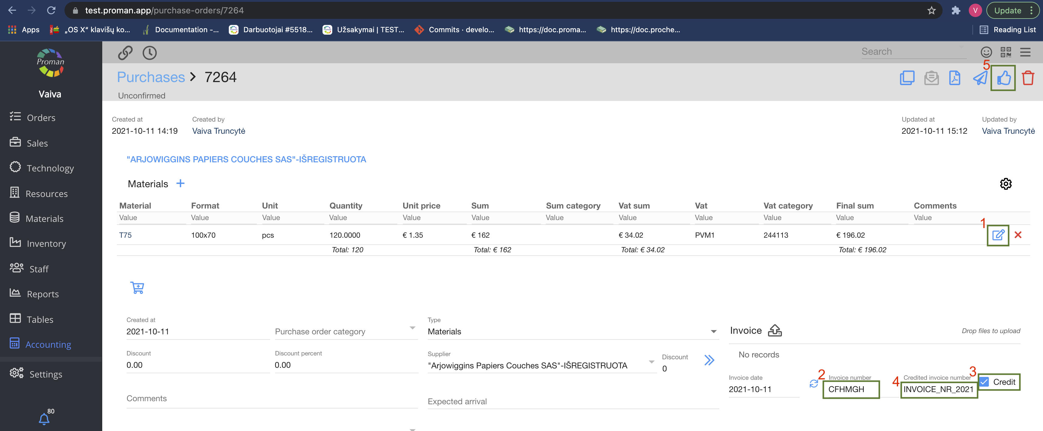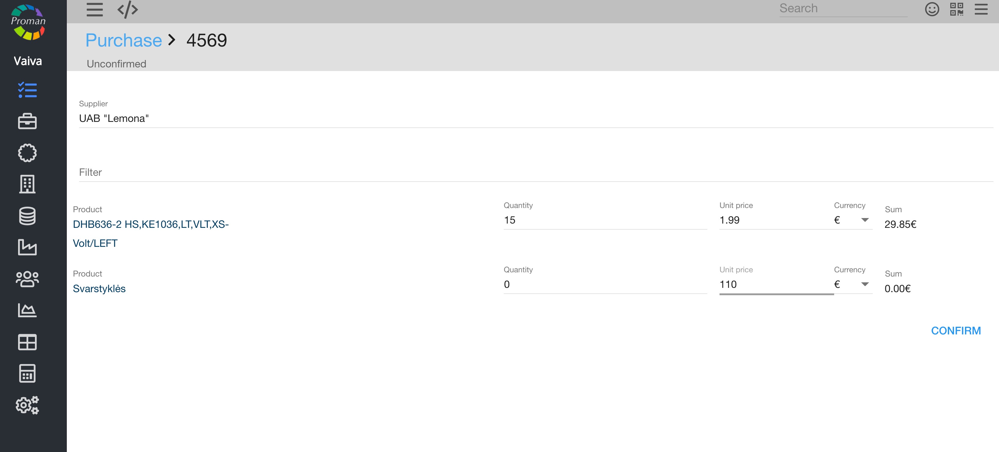 5.1. Edit the product (product, quantity, package quantity, Vat, Unit price - click )