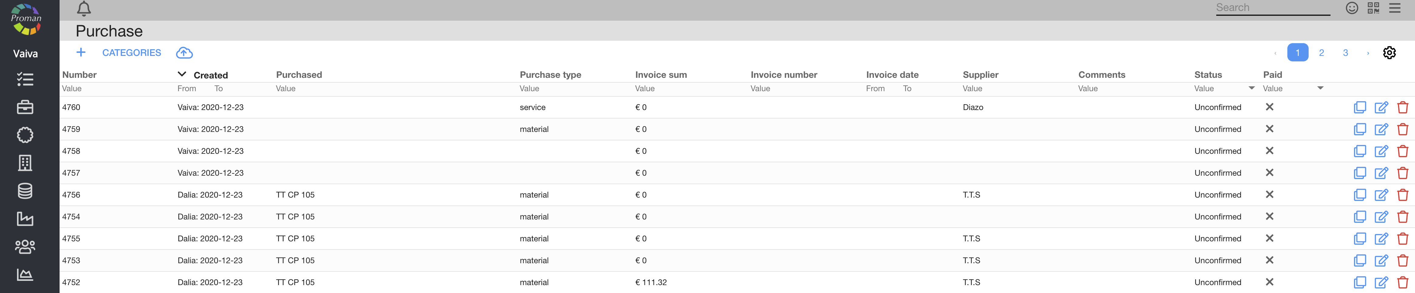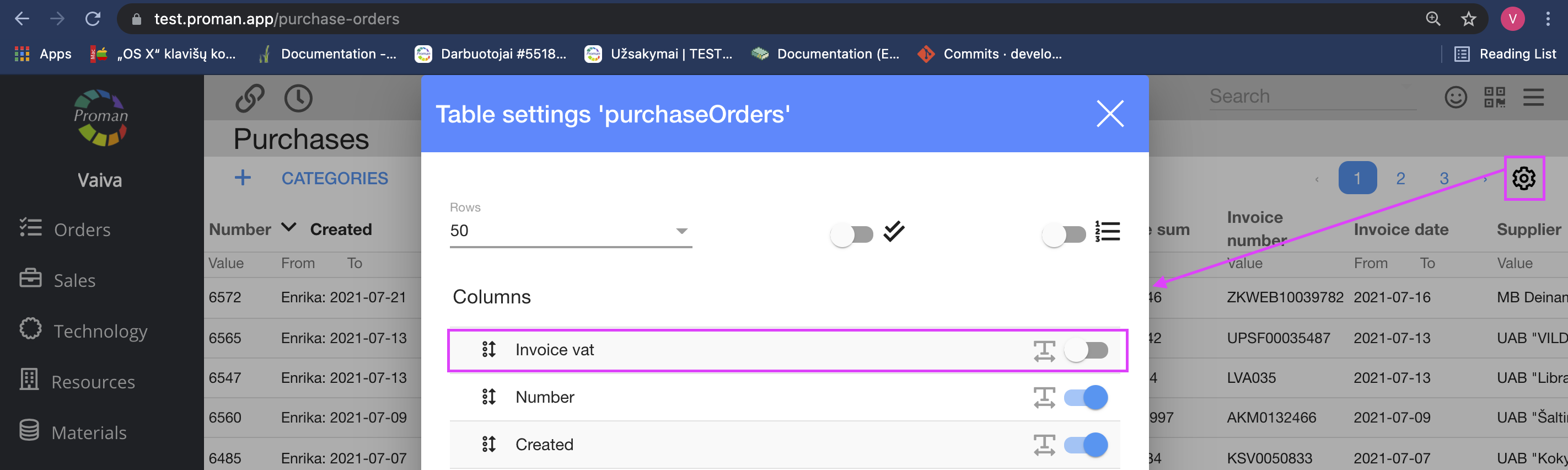 1. You can see the purchase's invoice VAT sum in the list of the purchase