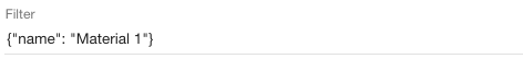 To create a filter which finds specific materials we need to use material name and categories combined. Enter {"name": "Material 1", "join": ["categories"], "categories.name": "category_name"}. This filter will try to find specific material with the name "Material 1" within the Material categories "category_name". |