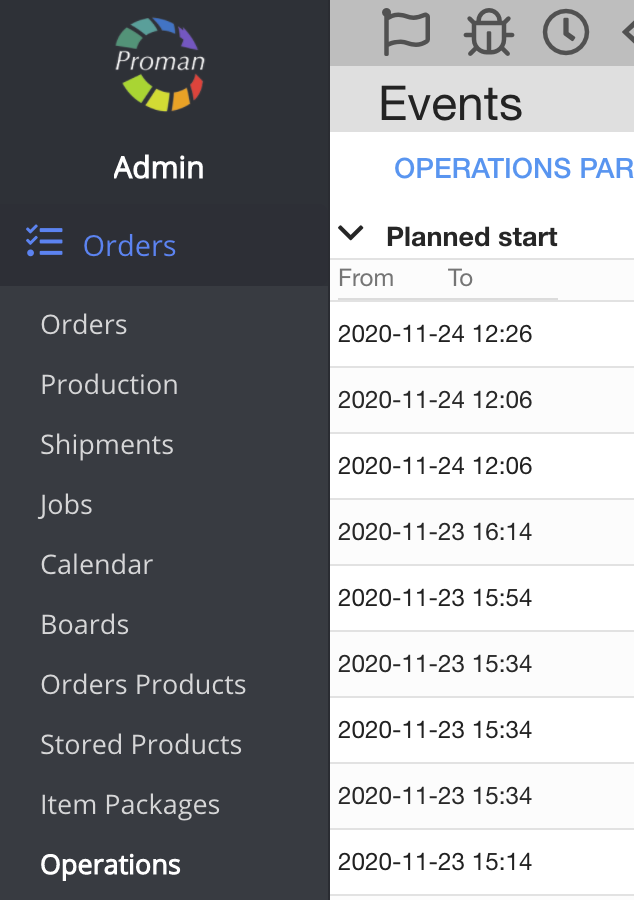 Operations are small parts of production. Here you can see and manage operations