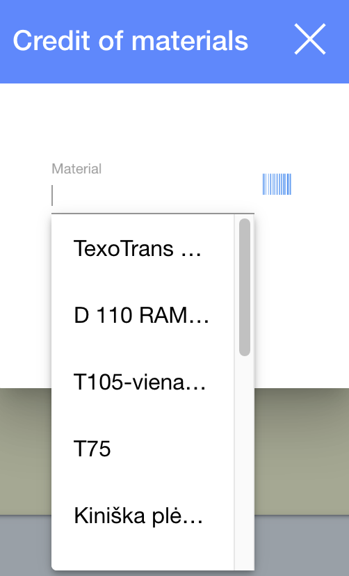 2.2. Choose materials (from templates or enter a barcode), enter a remnant and quantity;
