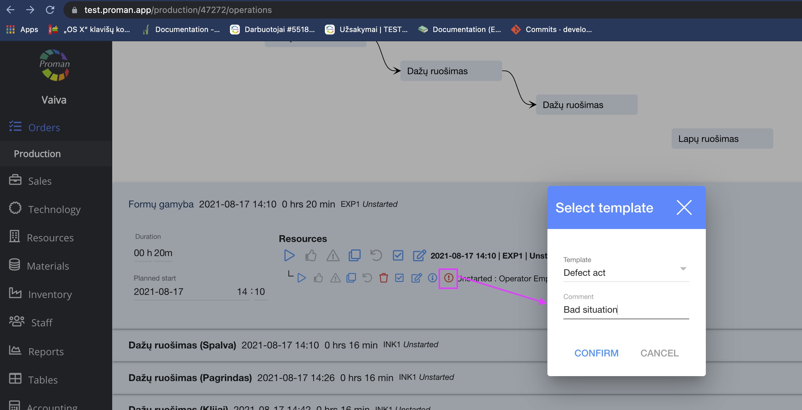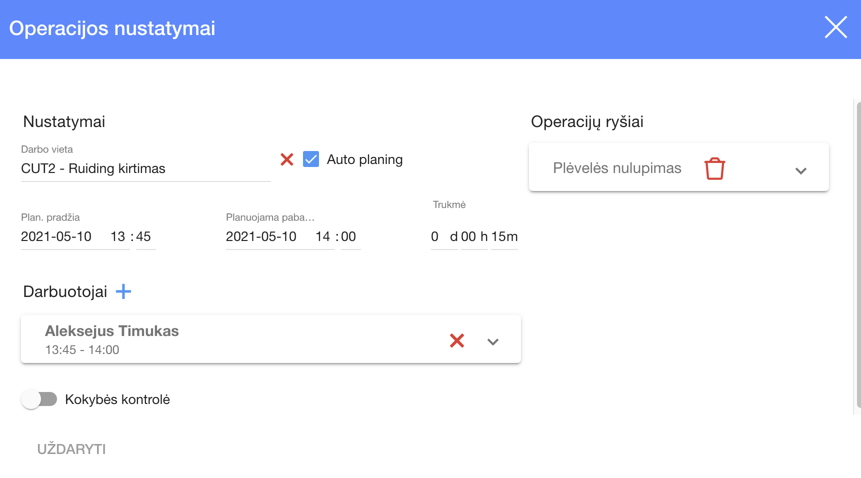 | Quality supervisor must confirm the operation's quality by clicking on this button. You can see this only if you have finished the operation and clicked | |