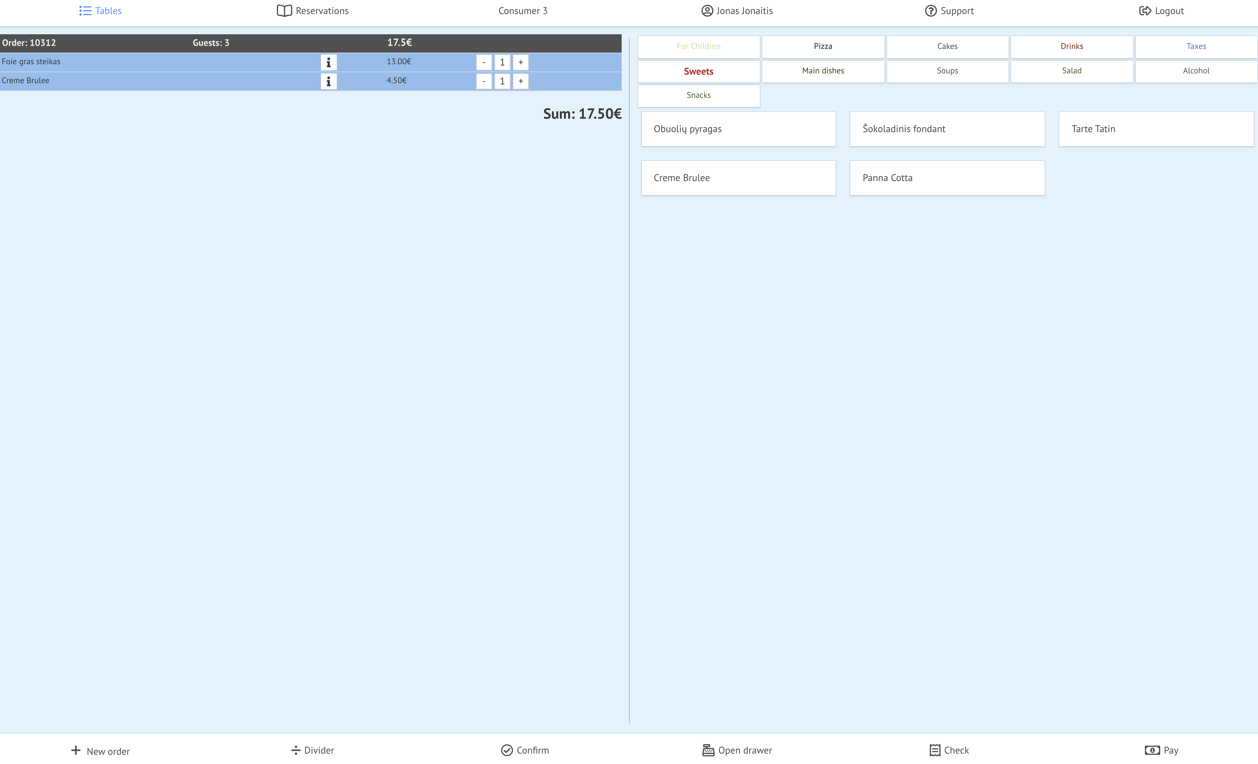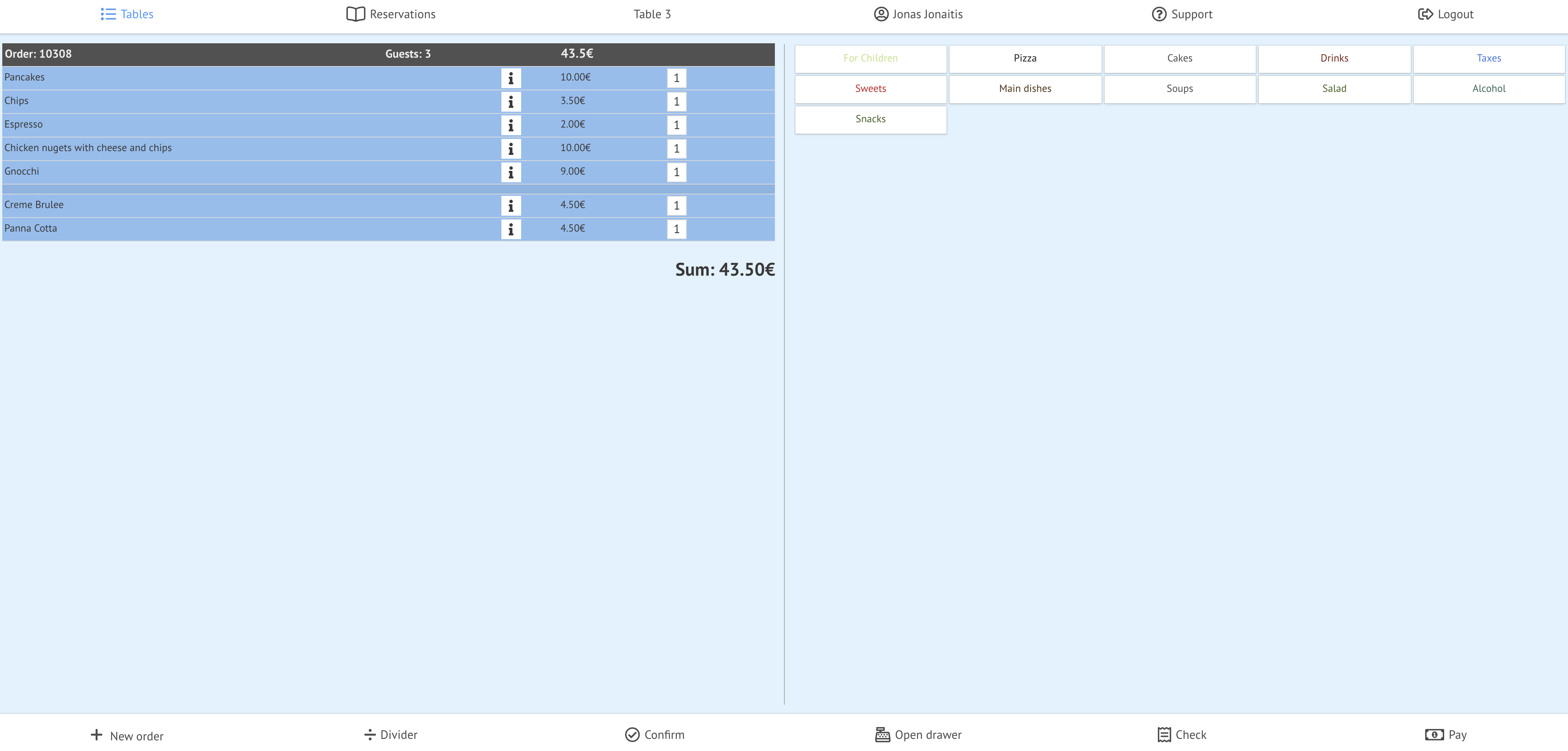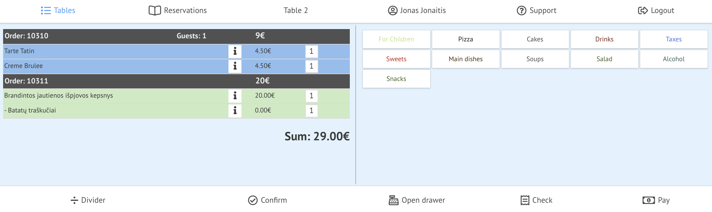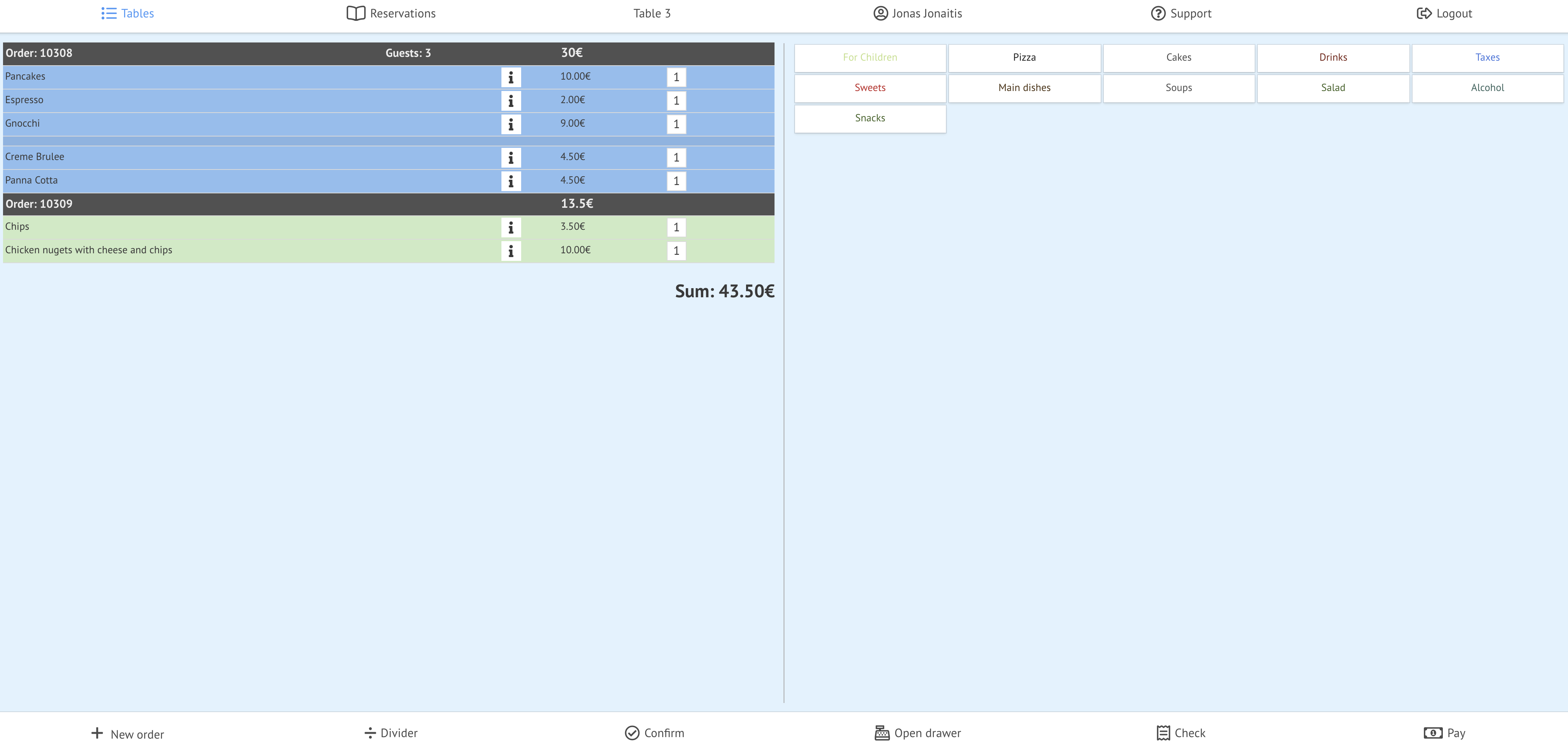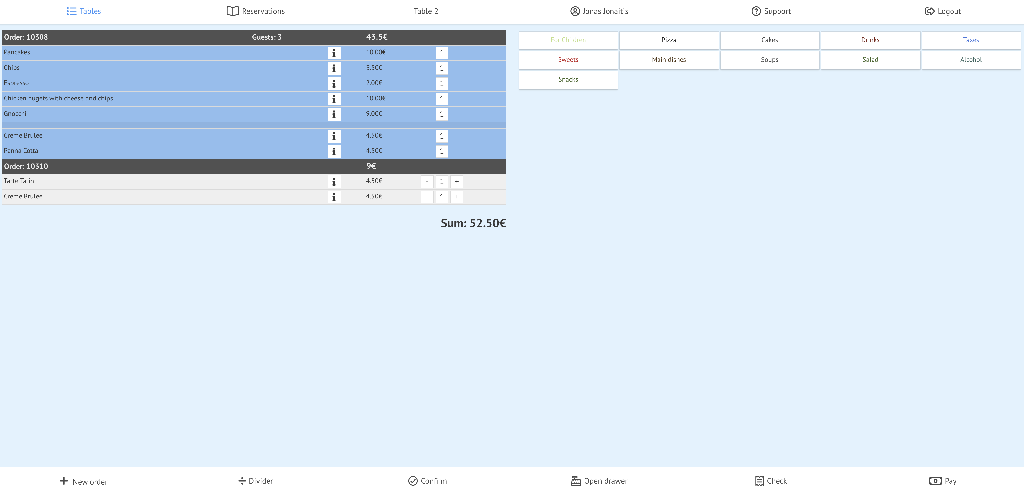 Note: In order to use this feature, the waiter must have the permission to separate orders.
