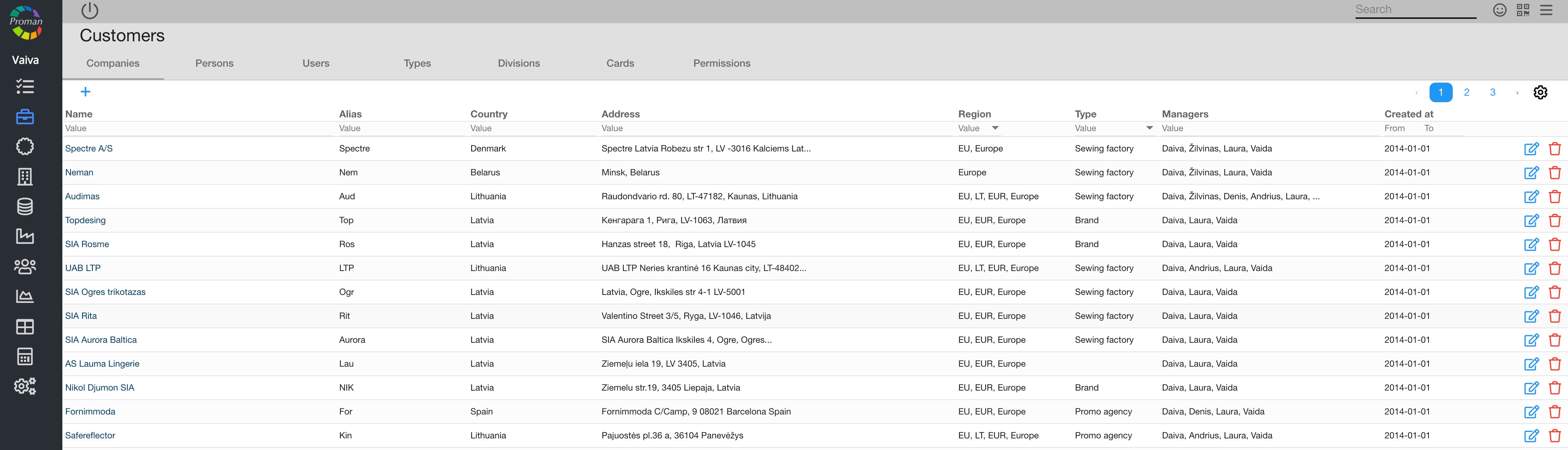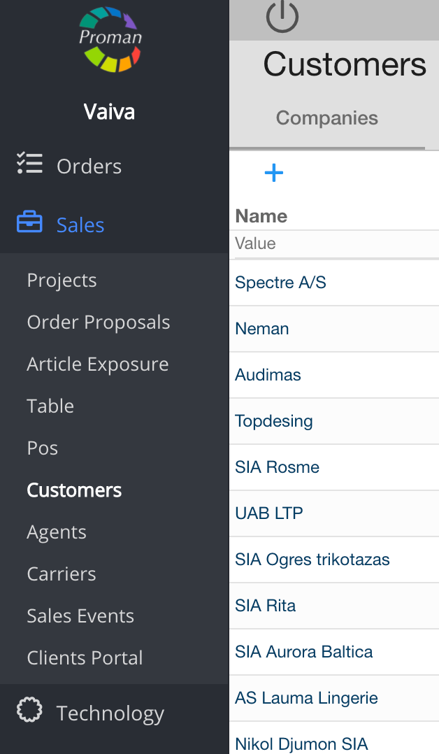 Now you can see the customer list: