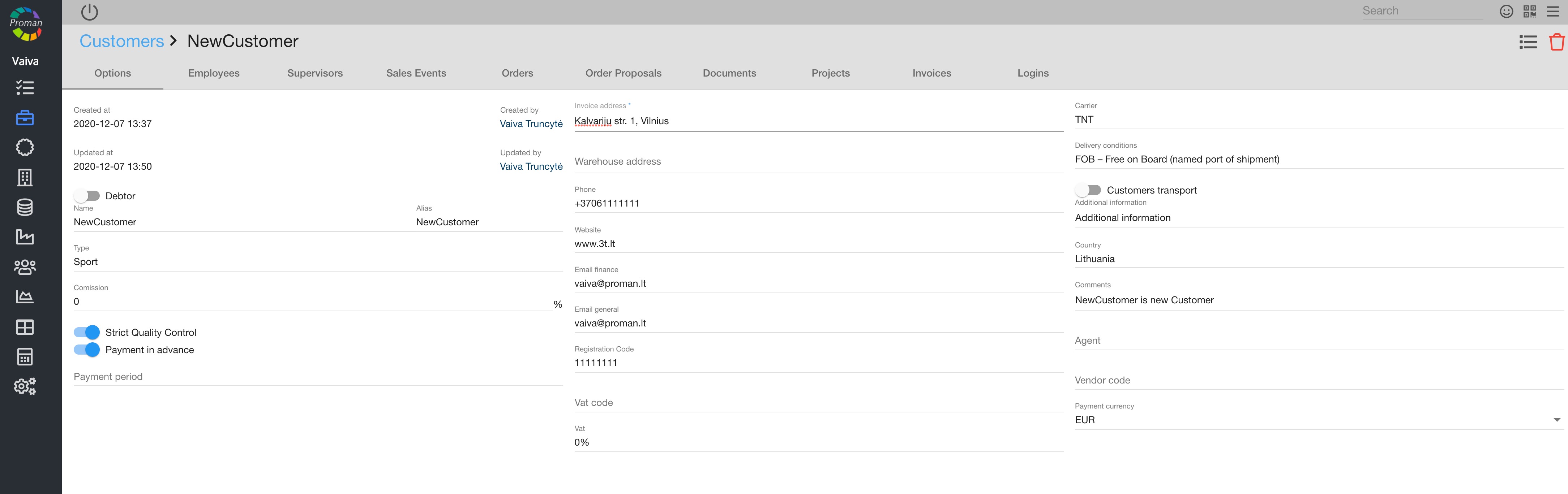 Here you can add information about the Customer.