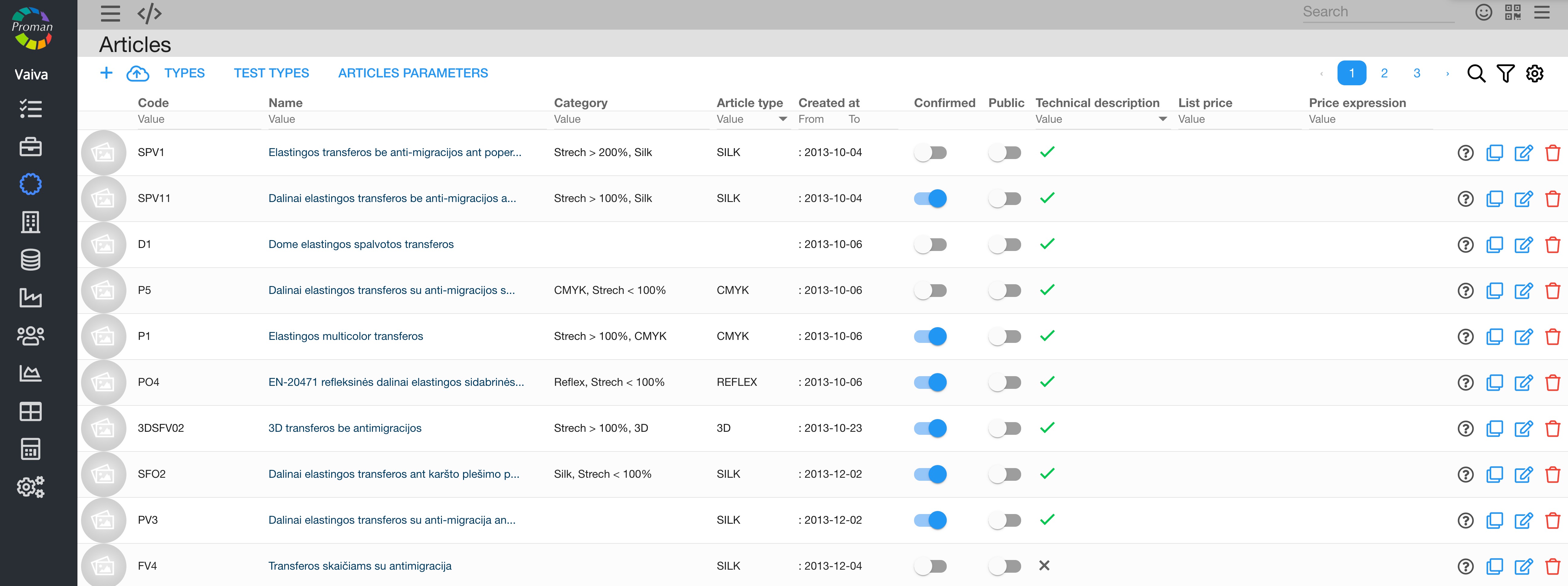 Now you can see the article type list: