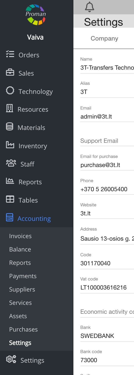 Now you can see the company settings