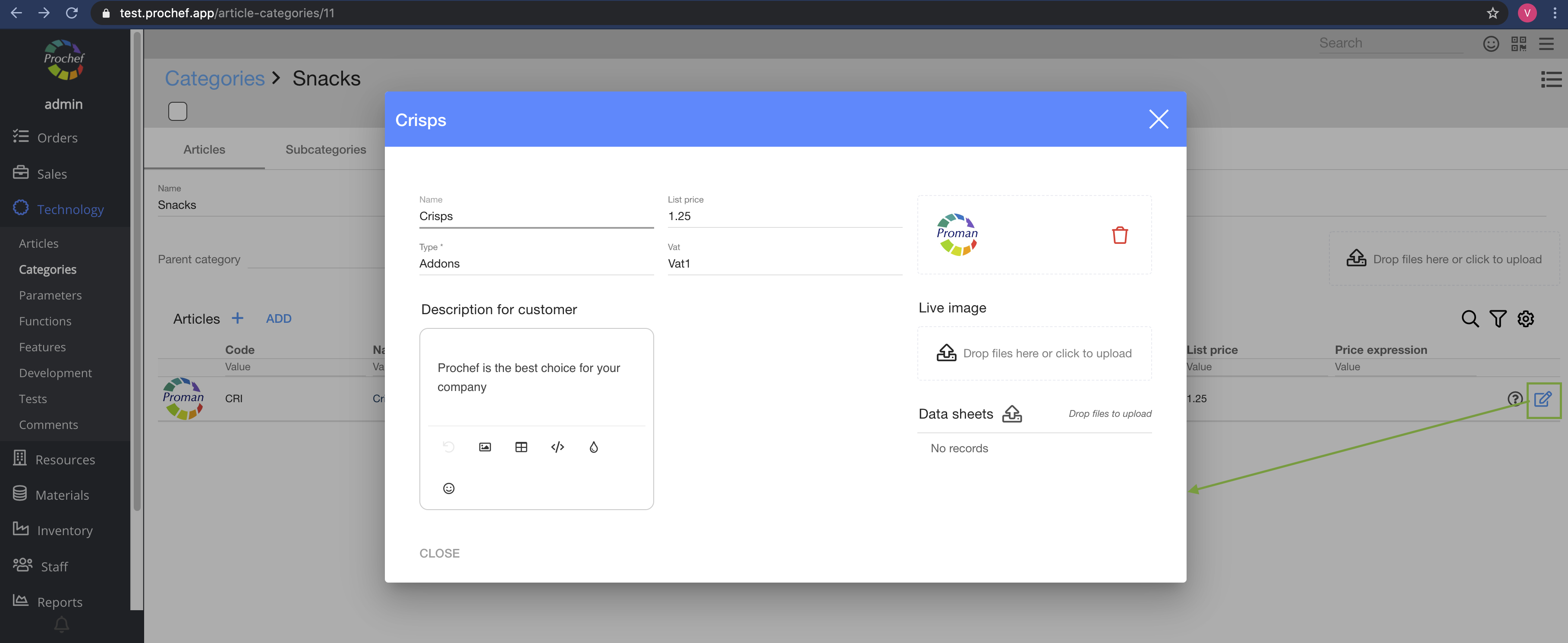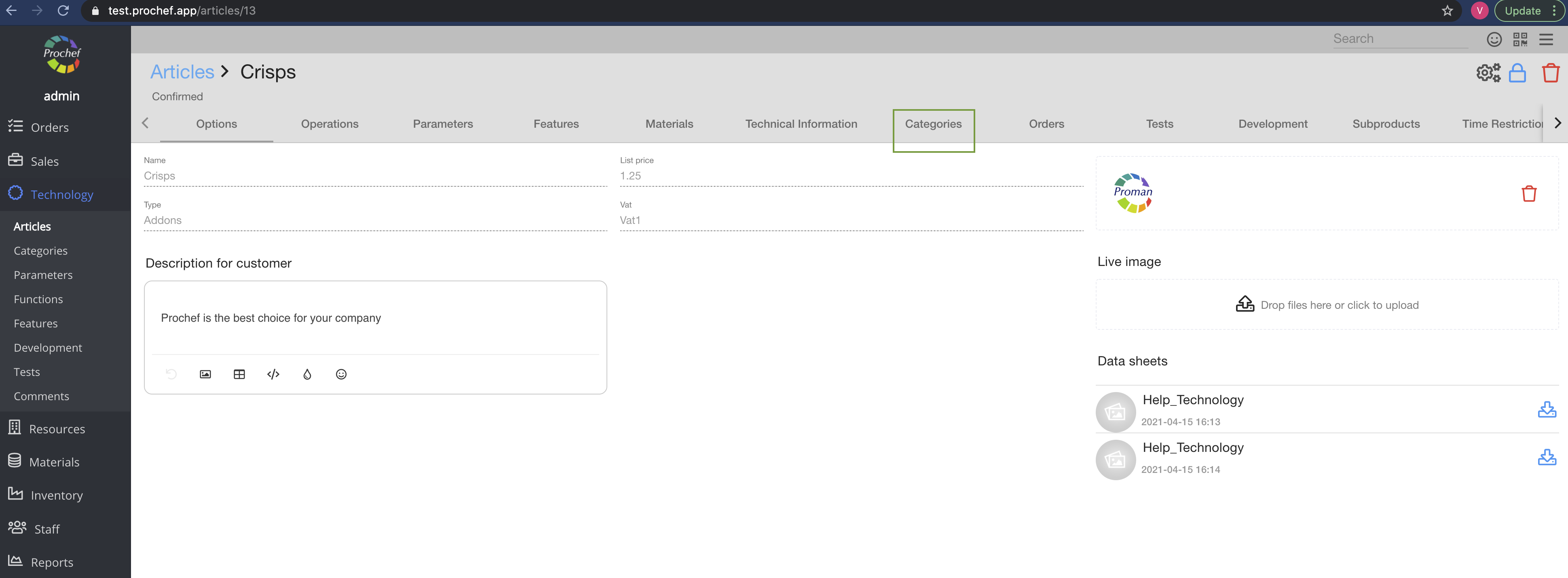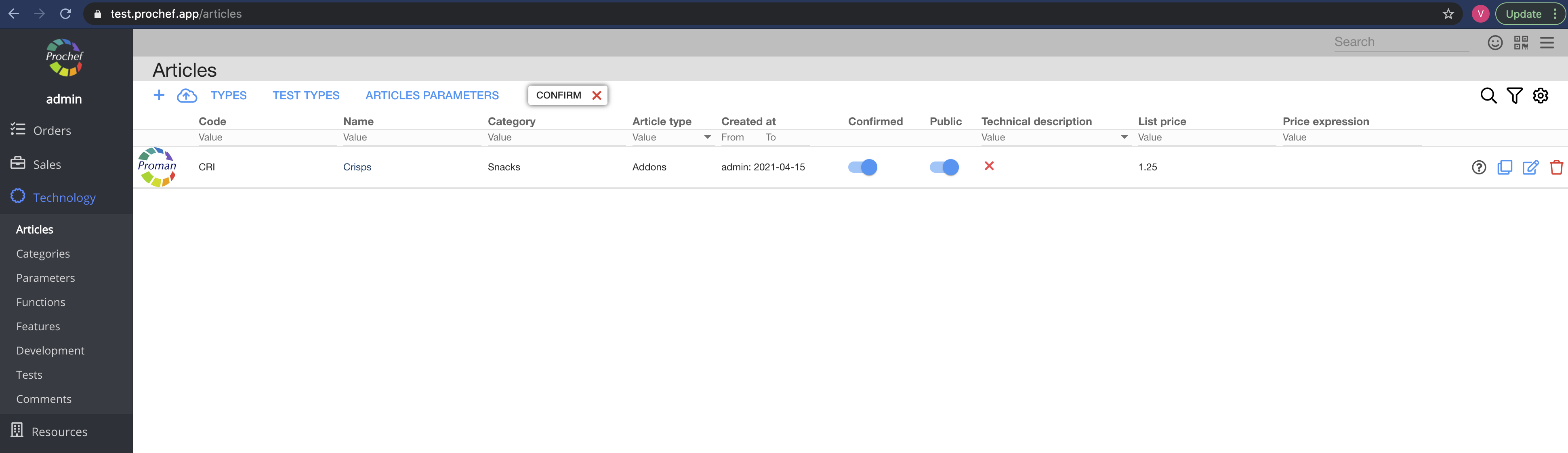 7. Confirm the article - click on