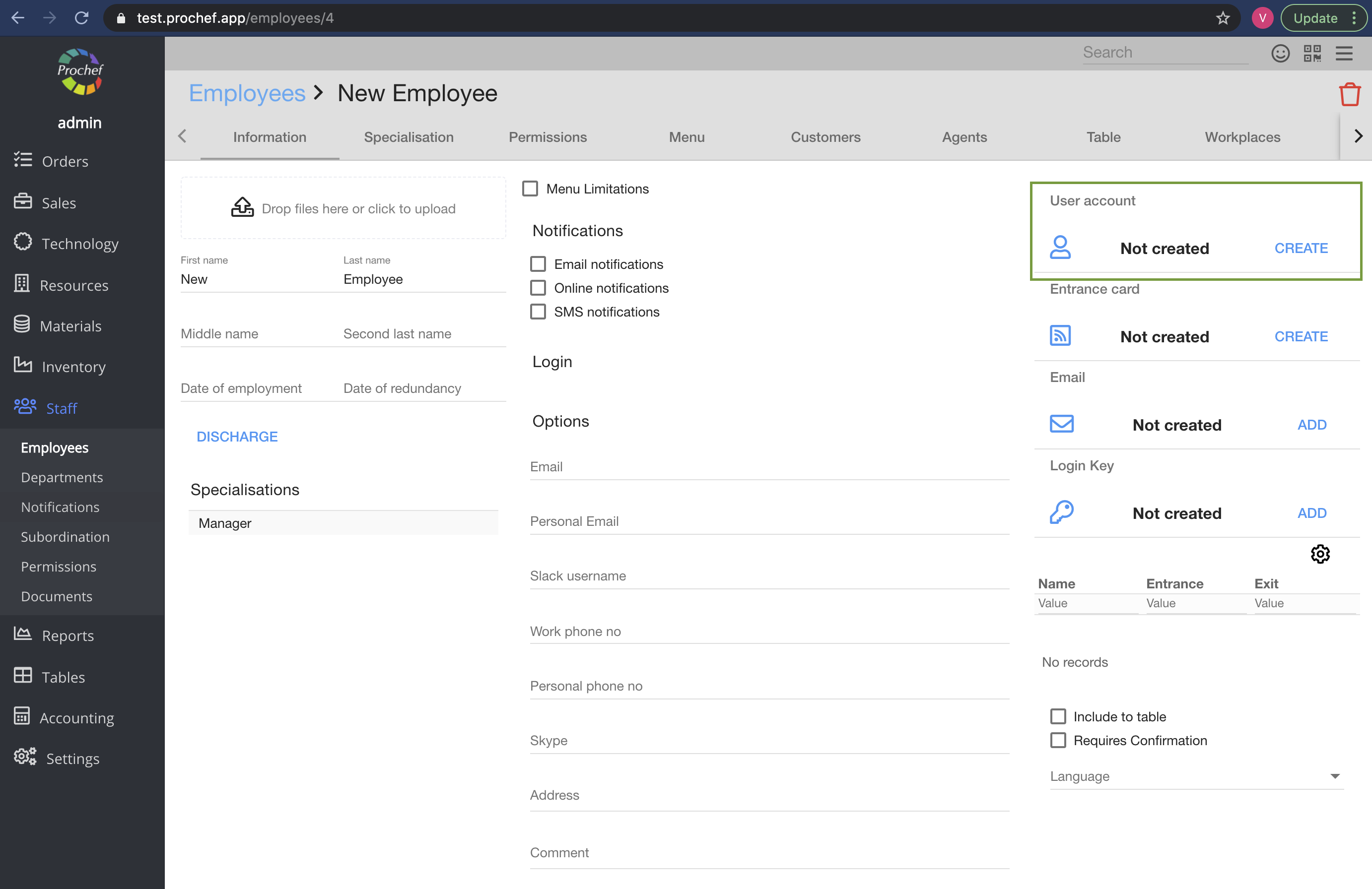 3. Create employee user account;