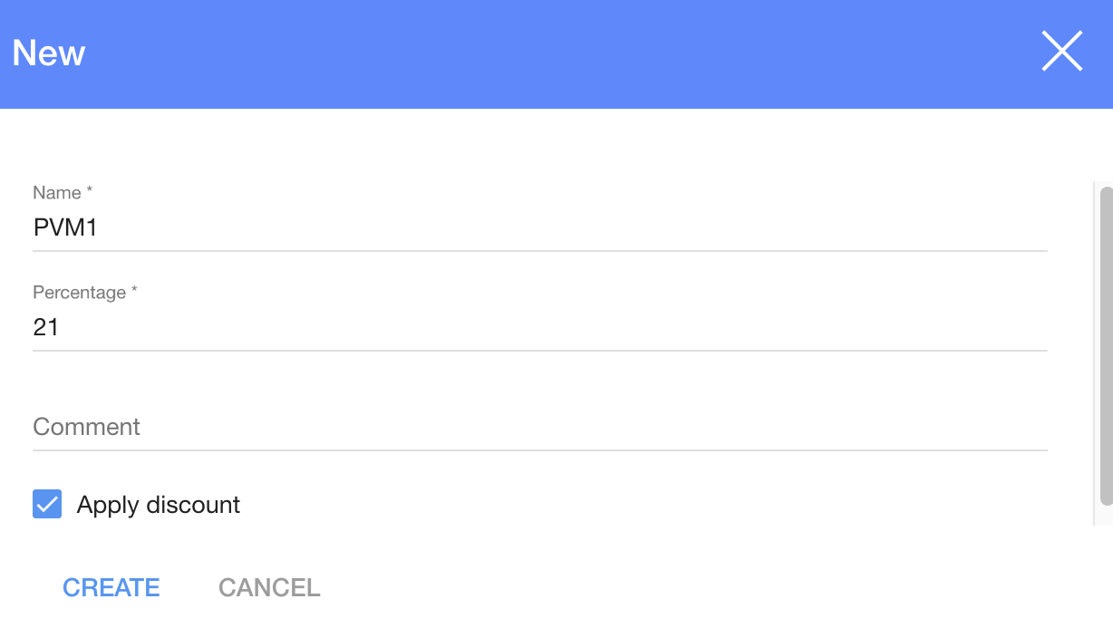 4. Enter a Vat name, percentage and click