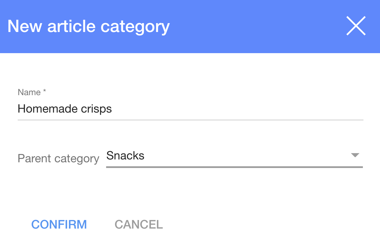 The article subcategories are created the same way as categories, but with a chosen parent category.
