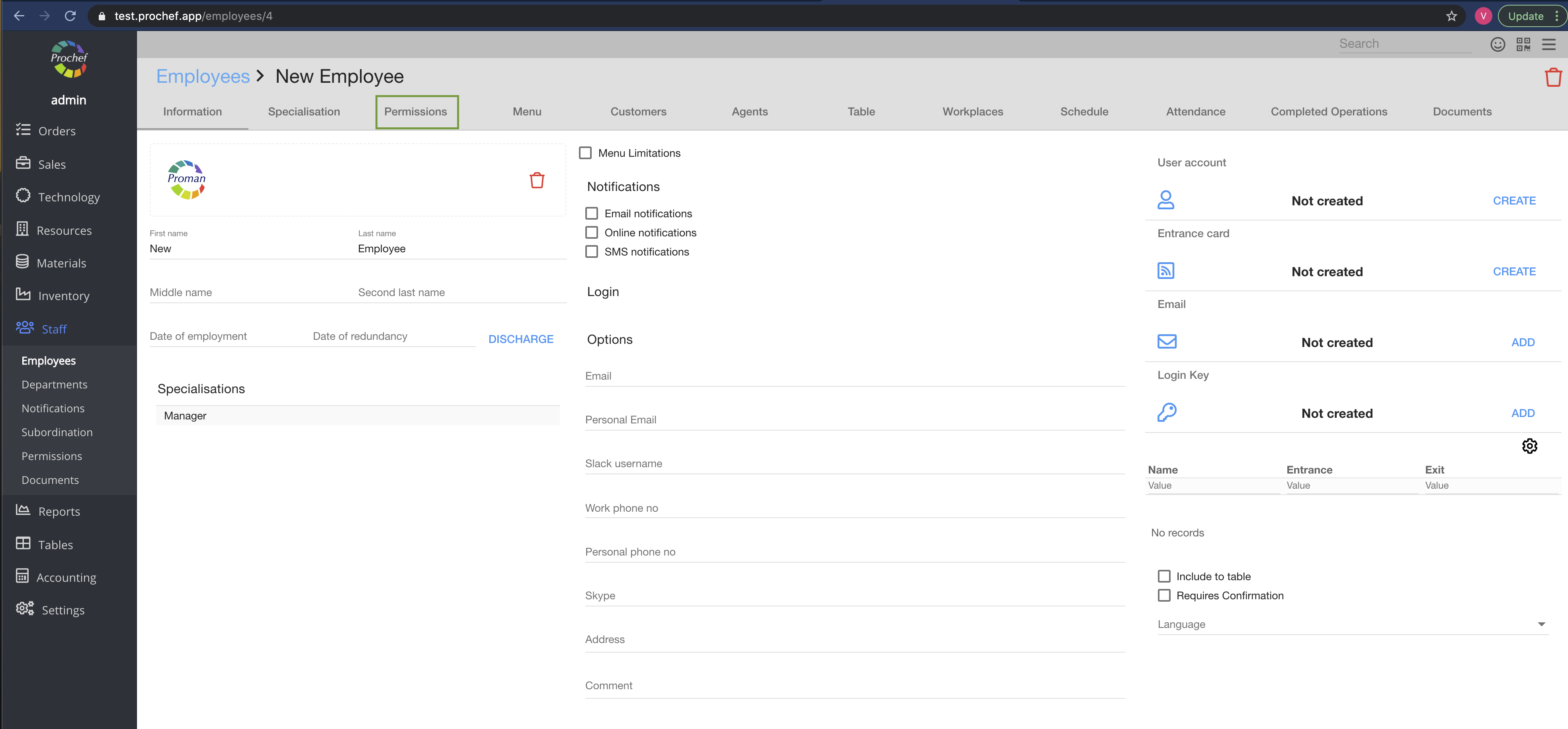Now you can see the employee permissions: