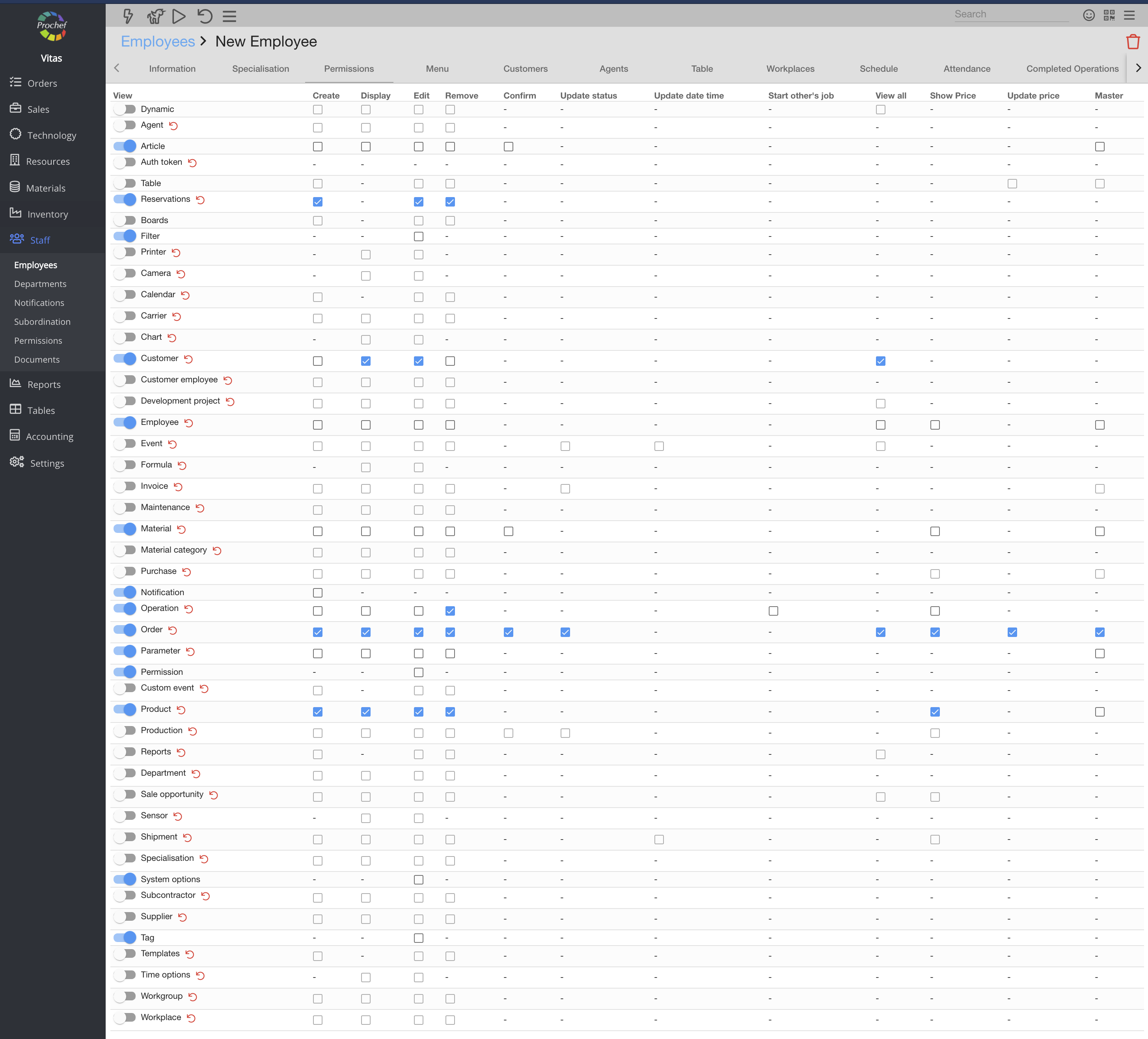 Now you should set up employee permissions in order to create and close orders, see all products, customers and ect.