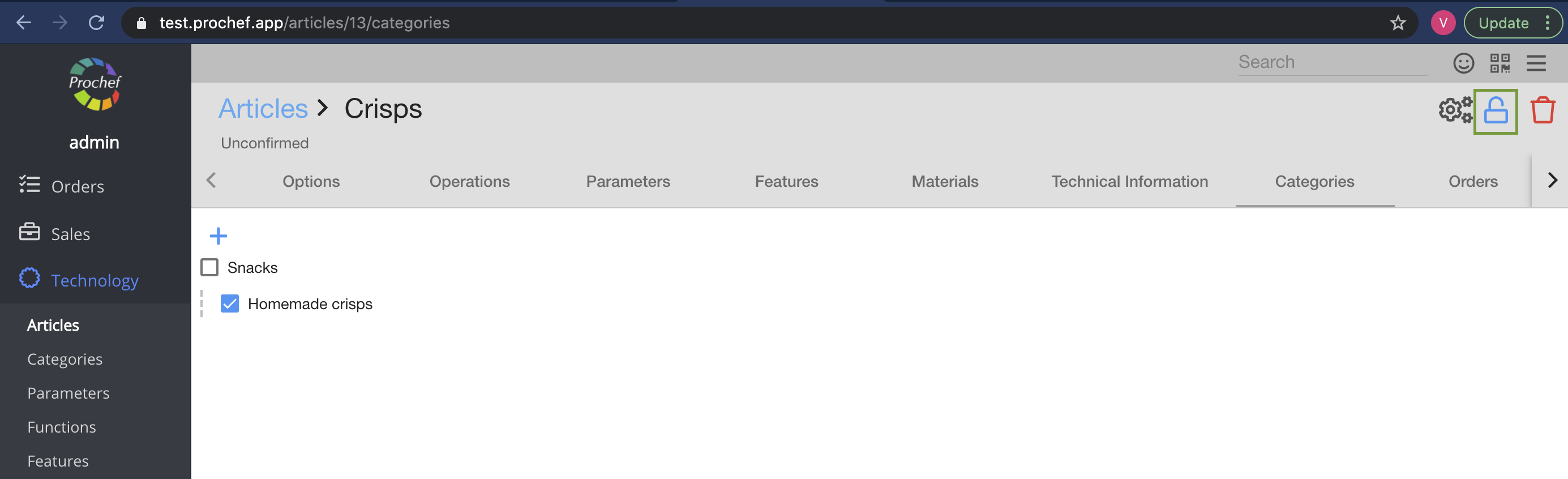 4. Unconfirm the article - Click on