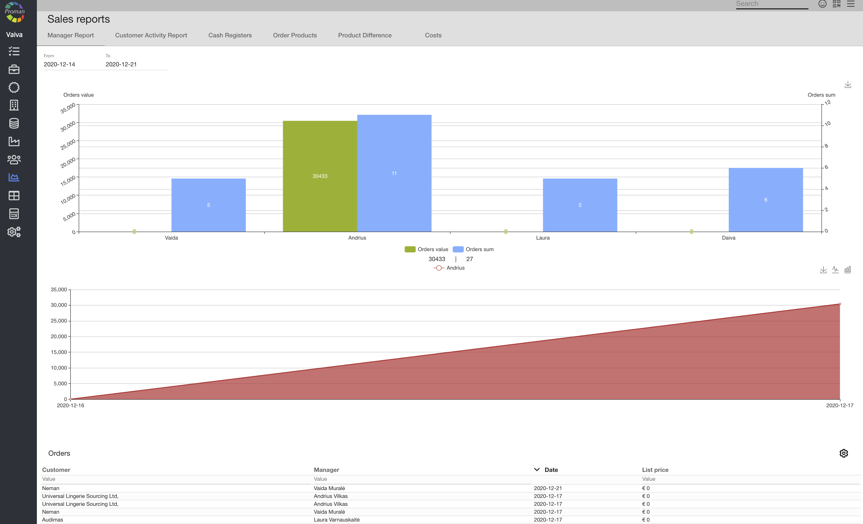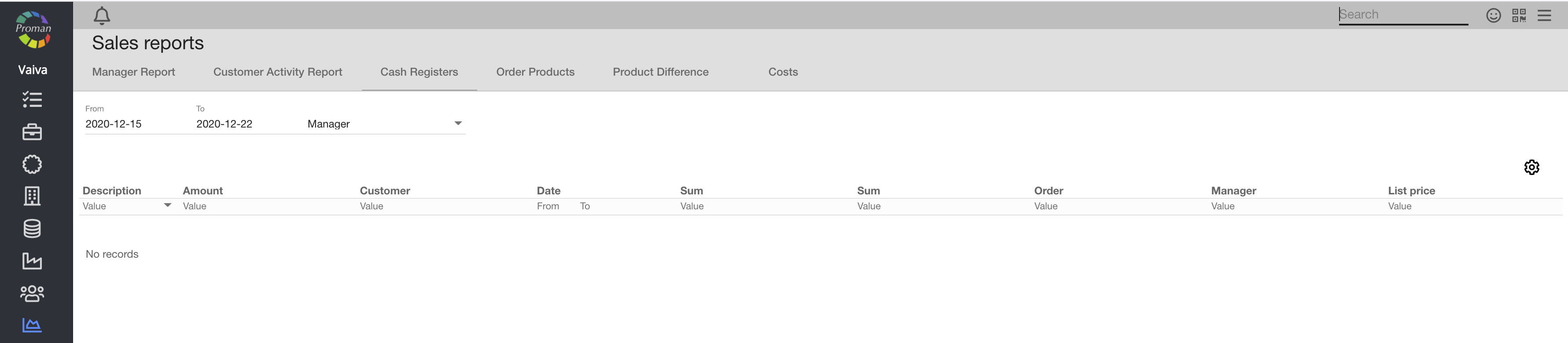 Now you can see the sales reports (Manager reports):