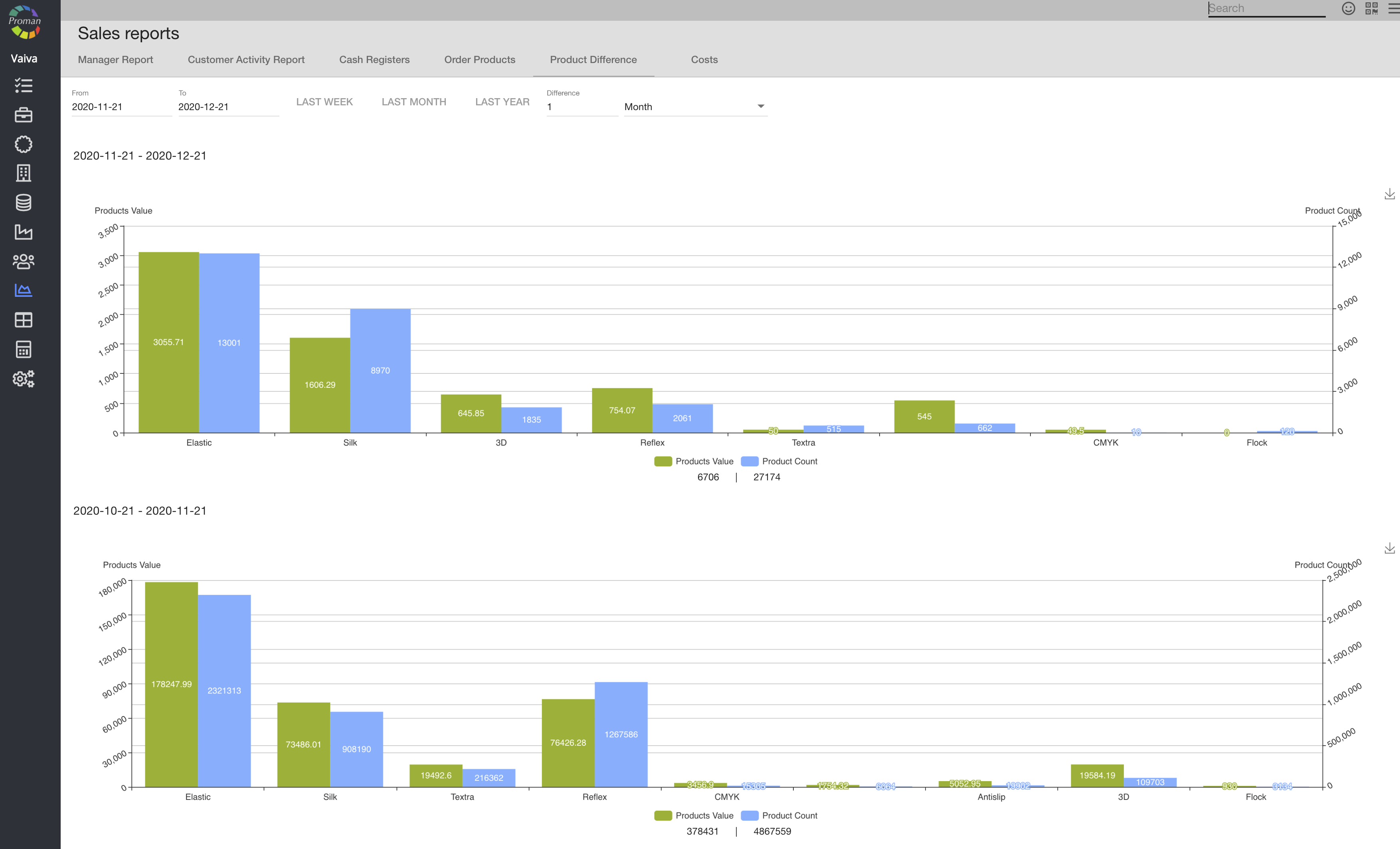 Here you can see product Difference report