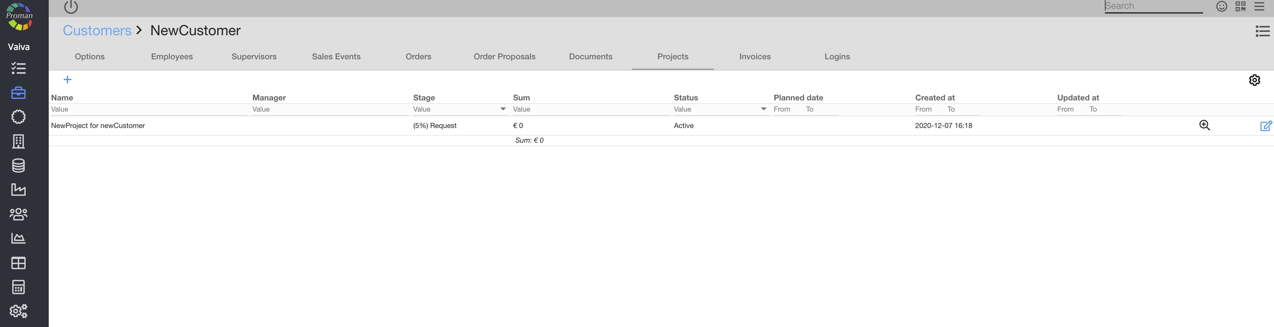 1. To create a new customer document, click on "+"