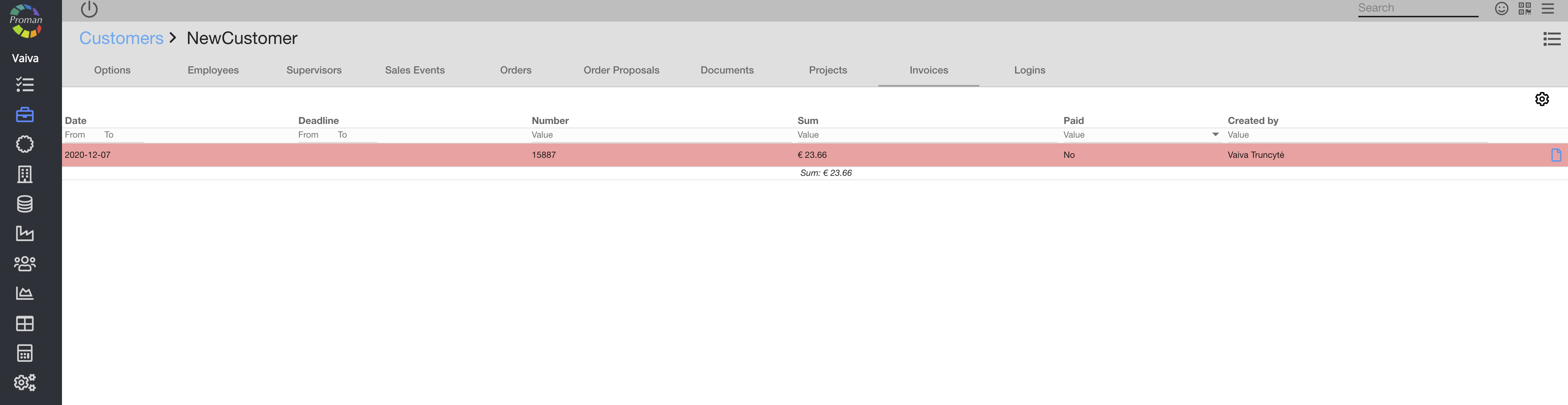 Here you can see () customer invoices