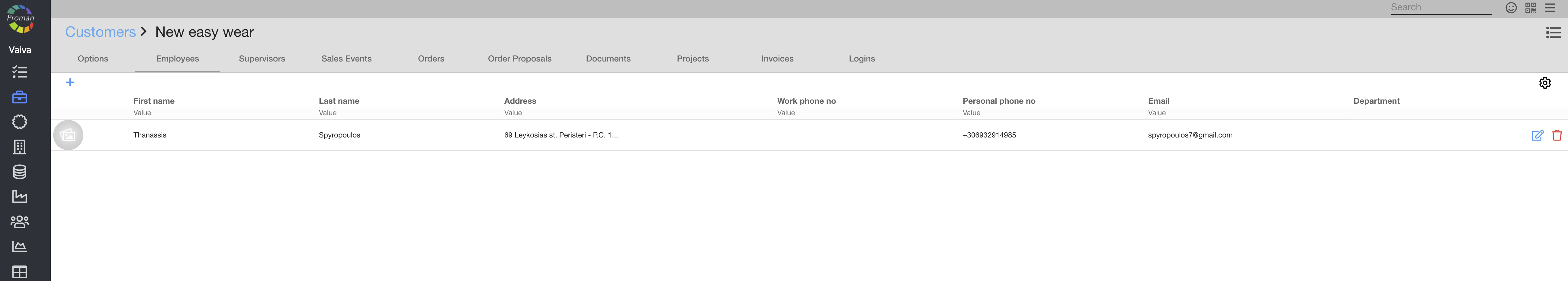 Now you can see the customer employee options