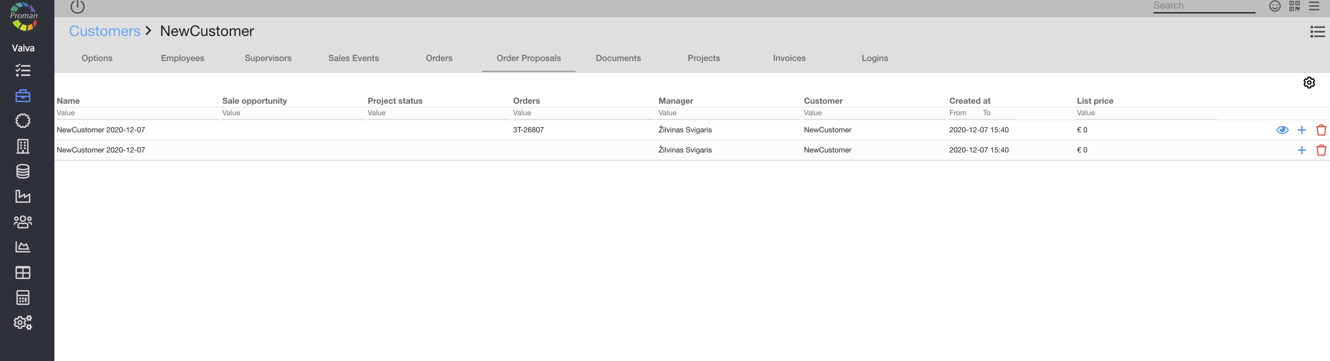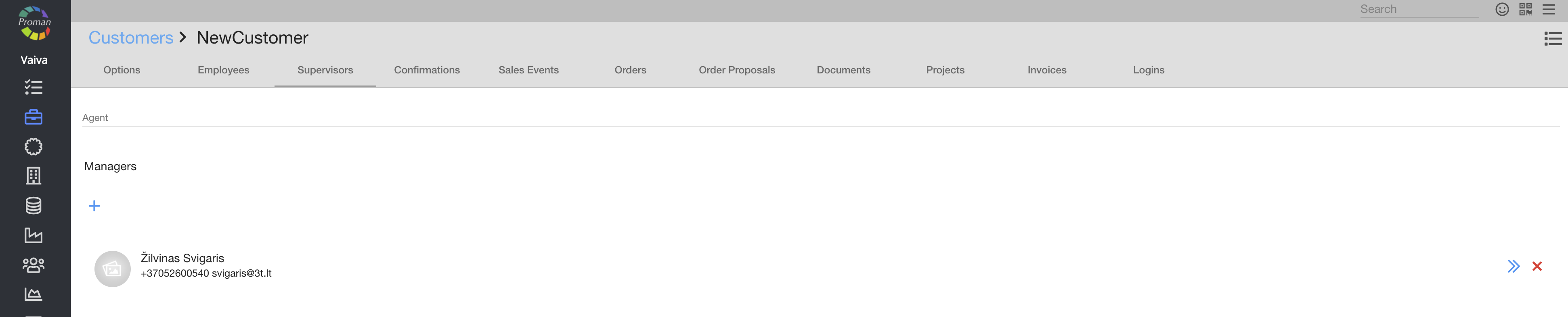 You can manage all information about the customer: Contact information, Customer Employees, Supervisors and etc.