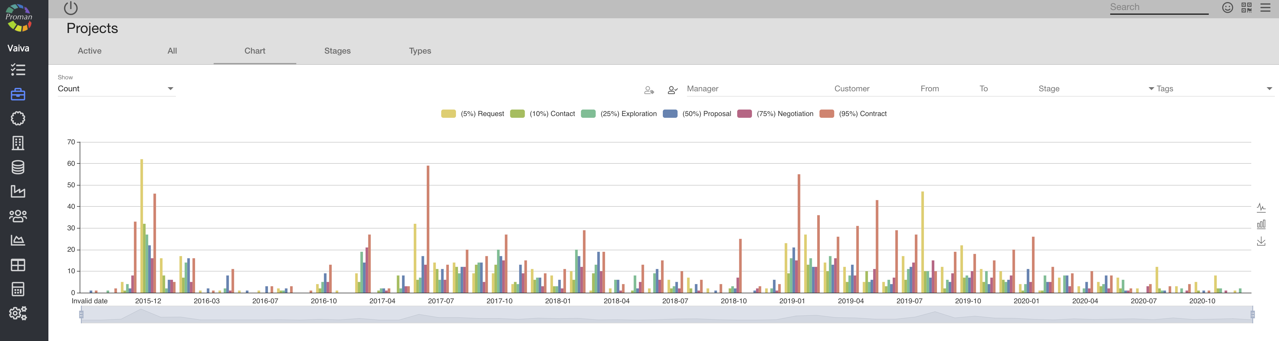 Sales opportunities are the main tool for managing customers' relations. It is used for tracking all opportunities with existing or possible clients. This way your marketing team can manage and improve marketing. Each opportunity is represented by a card that can be then dragged across all set sales opportunities stages.