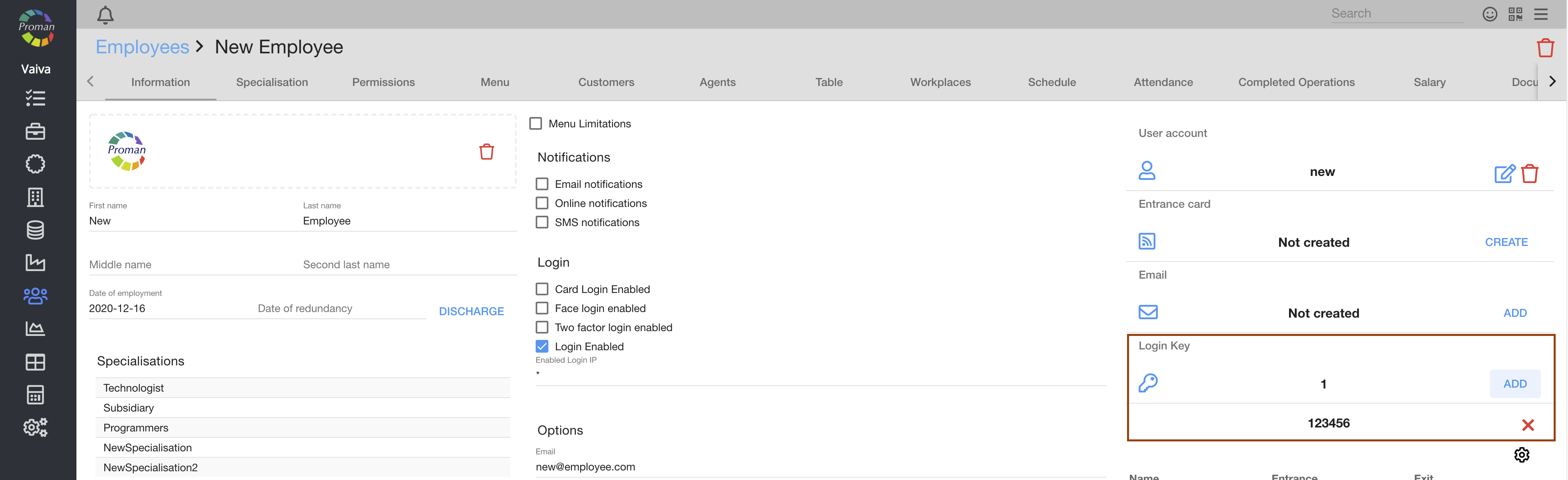 You can see the login keys in the employee information (Organization or Customer)