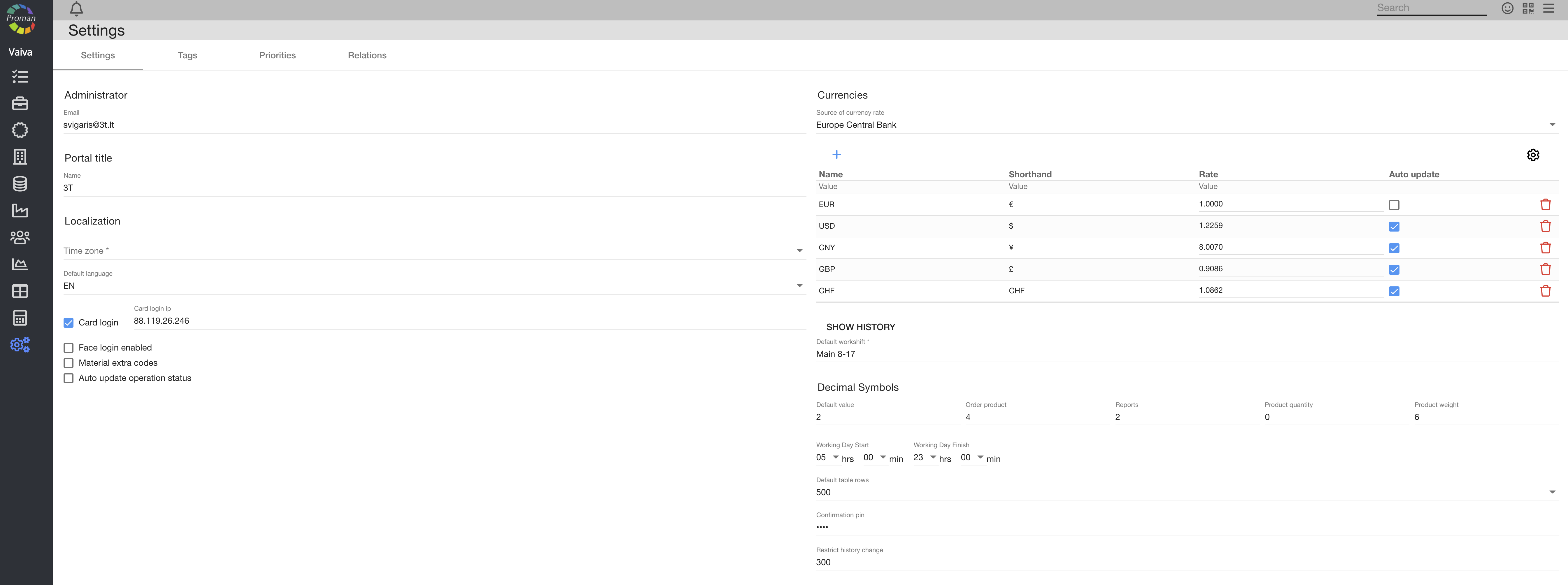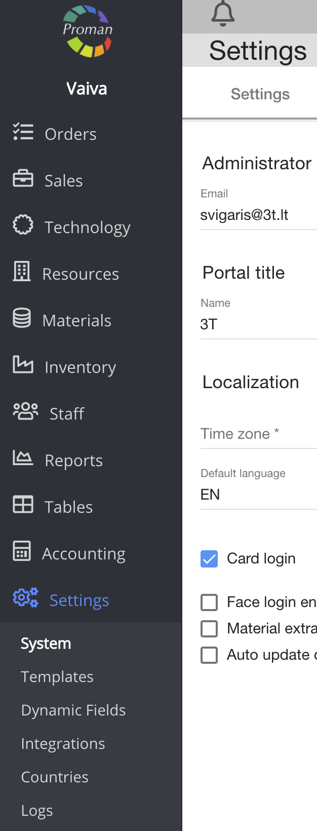 System settings define how information is displayed across the Proman system. Also there are options that control different functionality such as invoicing - your business details should be used in each and every invoice.