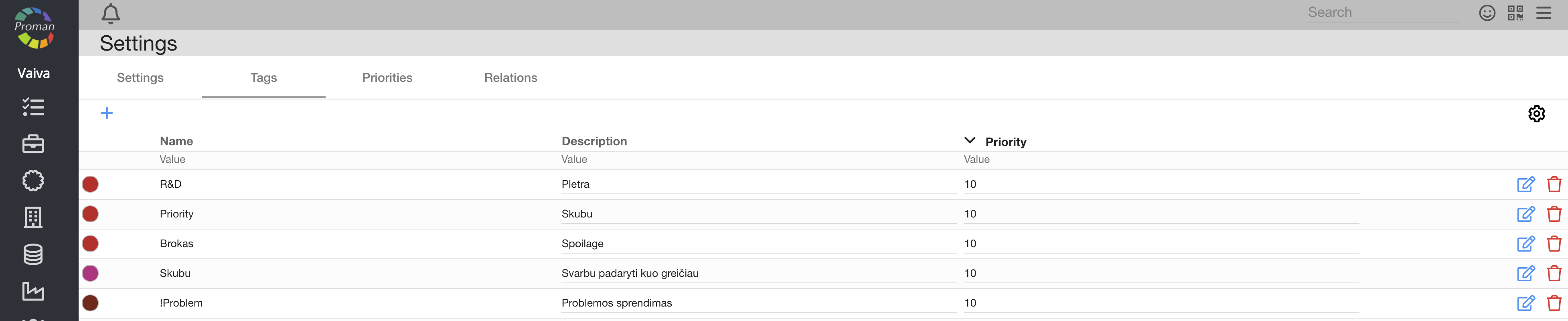) Tags. Higher priority will be seen at the top of the list (in Projects).
