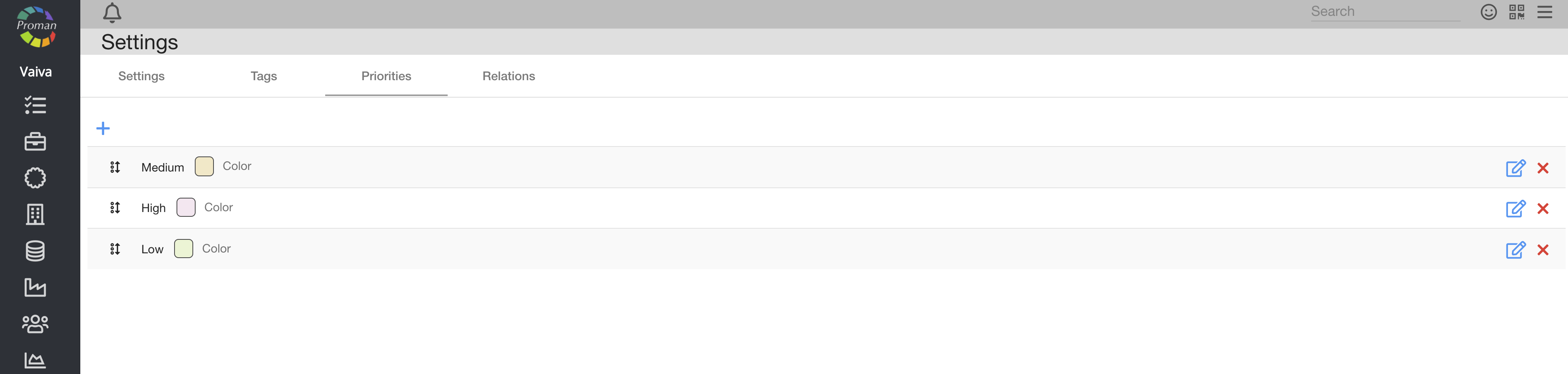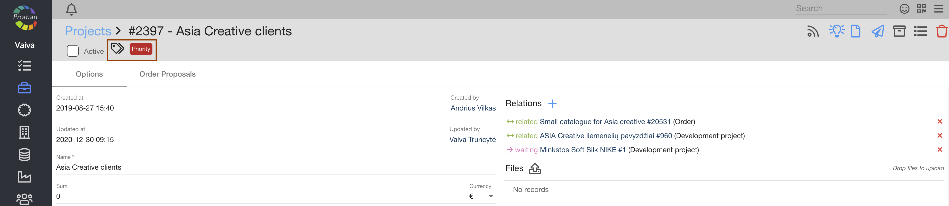 ) Priorities. Color will be seen at the top of the list (in Projects).