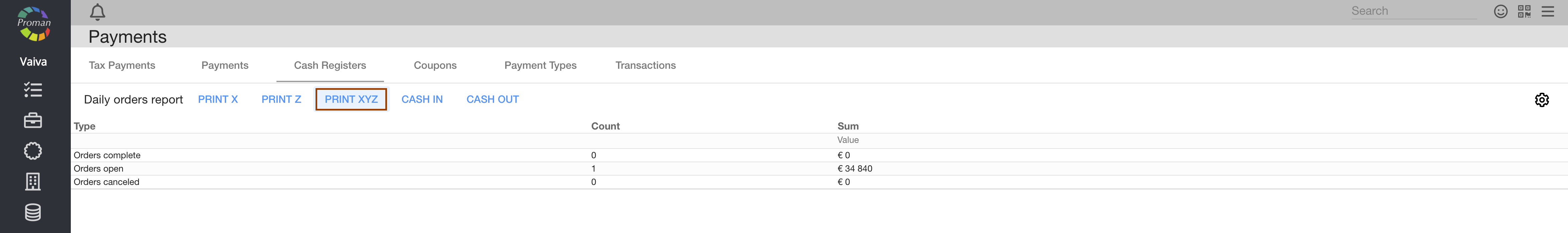 Accounting -> Payments -> Cash Registers -> PRINT XYZ -> Template