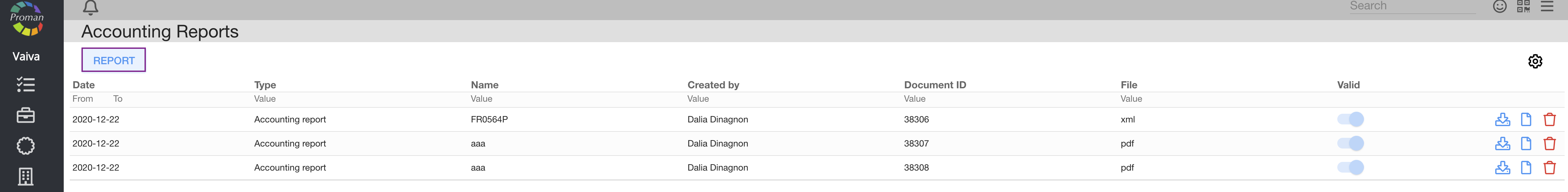 Accounting -> Reports -> REPORT