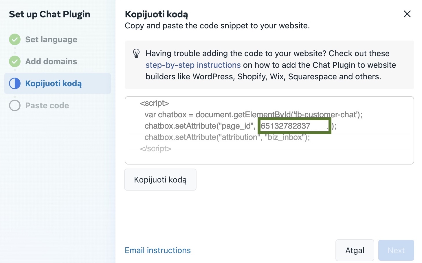 Step 7. Copy your page id from the "copy code" page