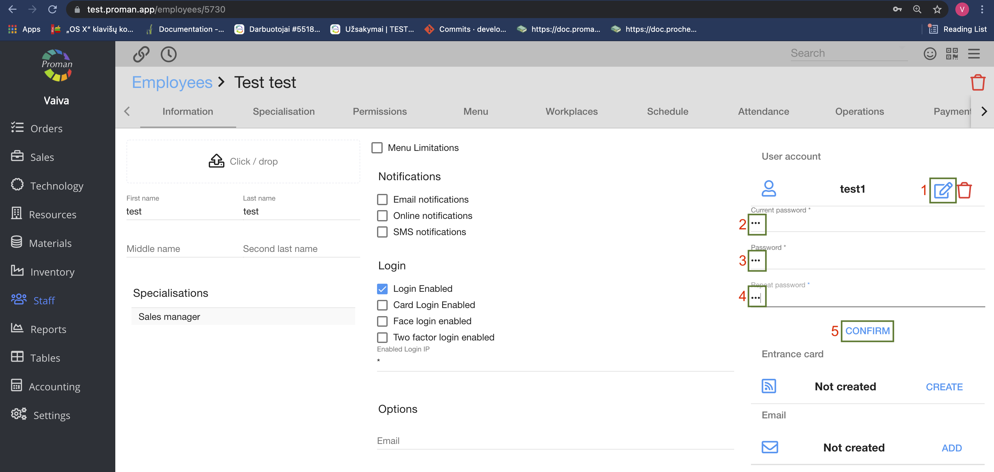 3.1. Click on (in employee information):