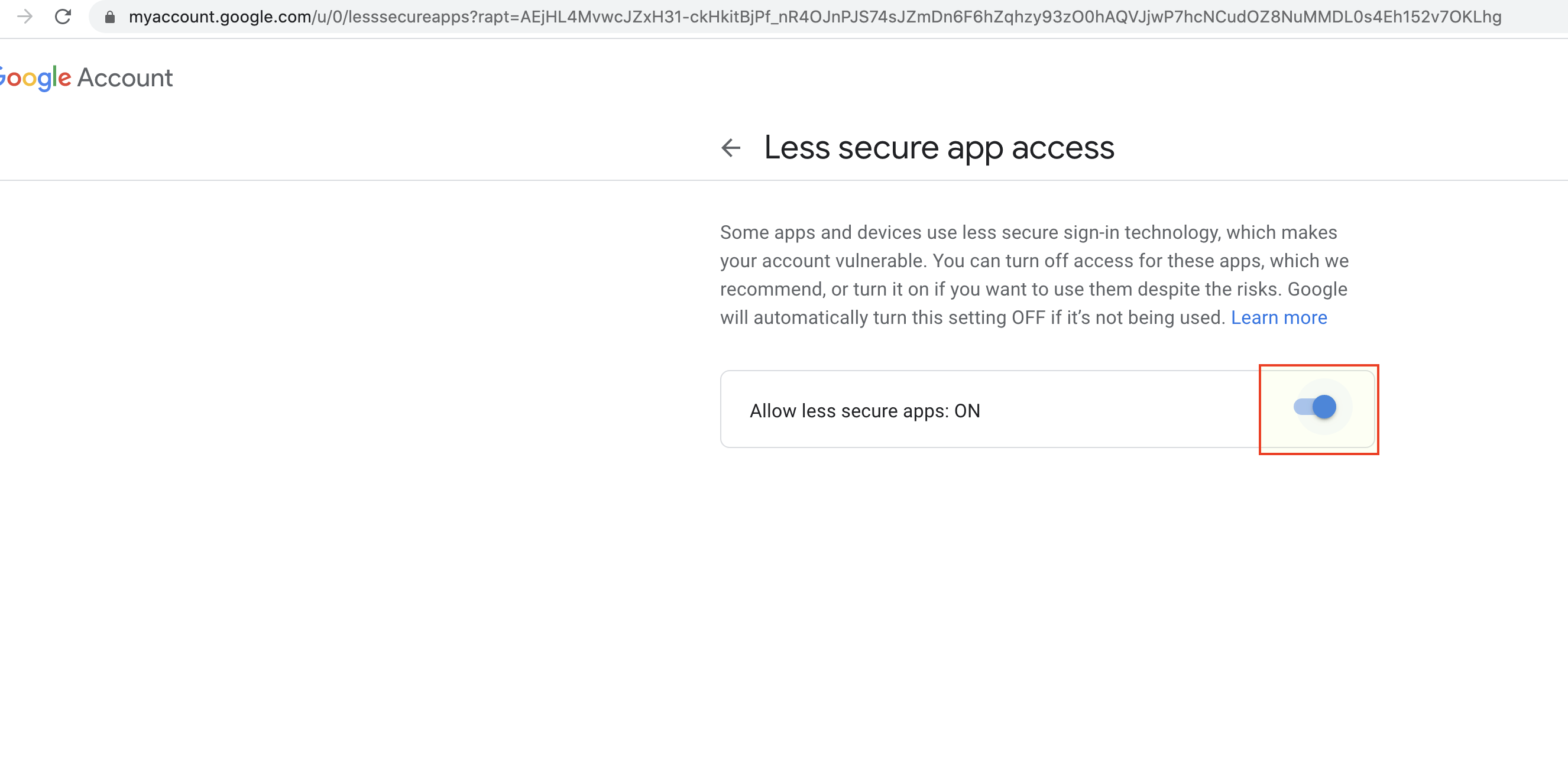 1.3. Now you can turn on "Less secure app access" ()