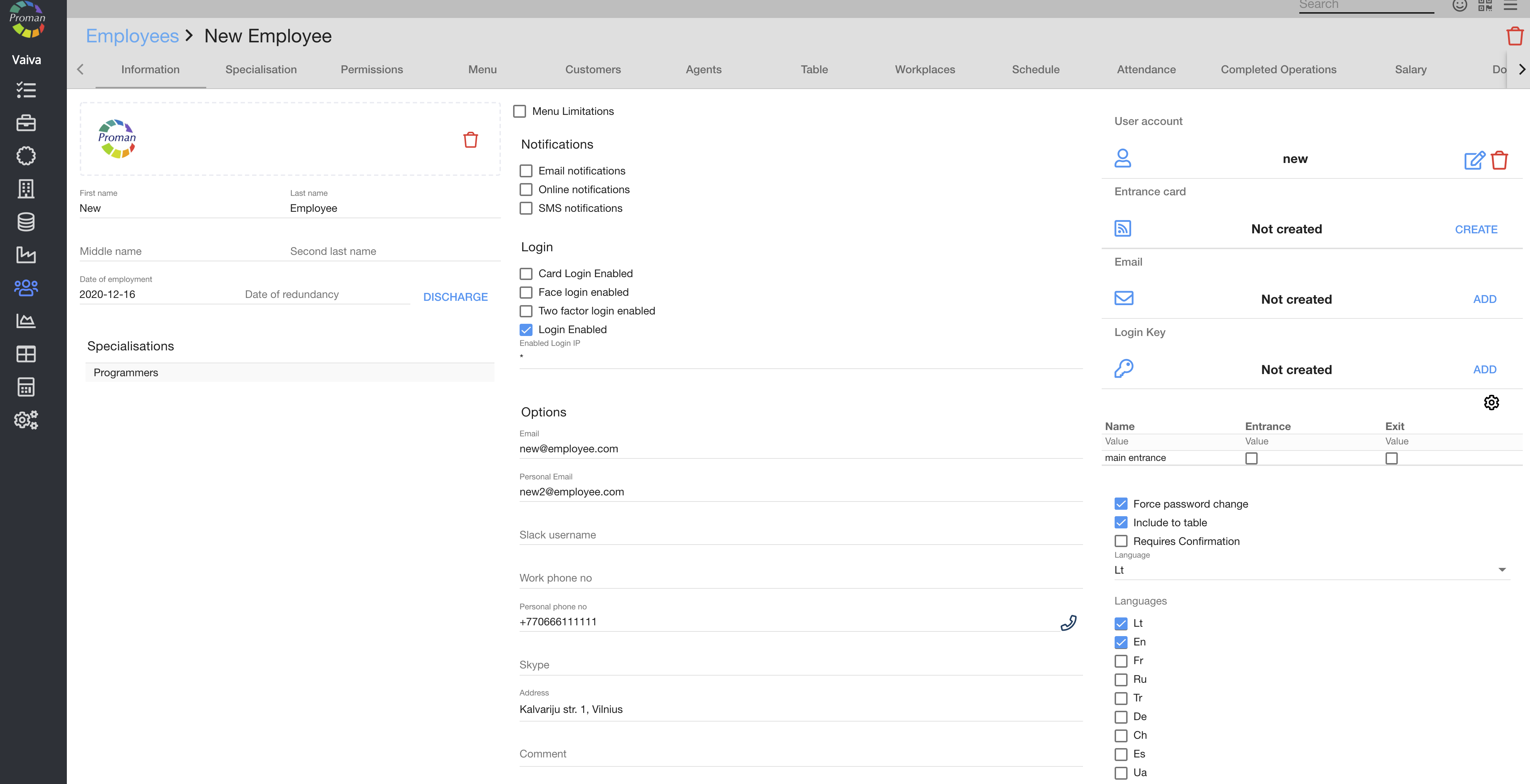 Create employee login