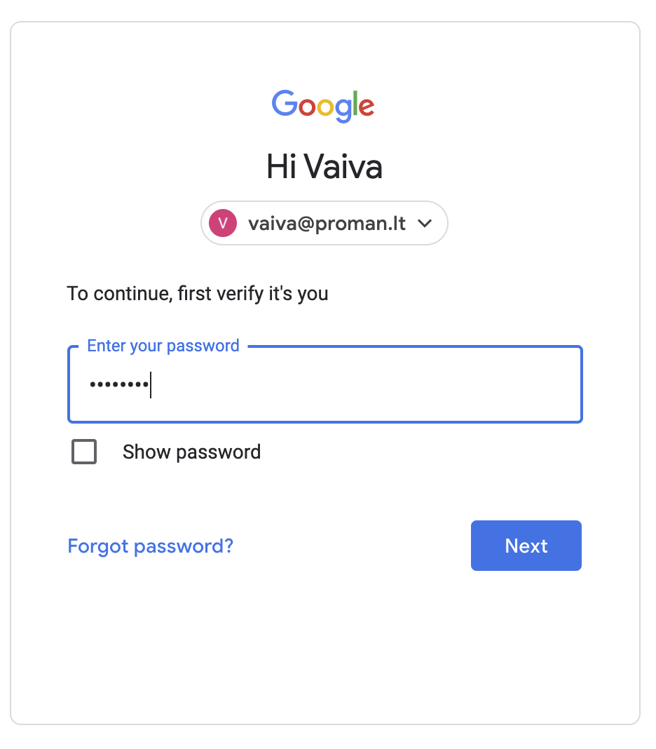 2.2.2. Enter email password;