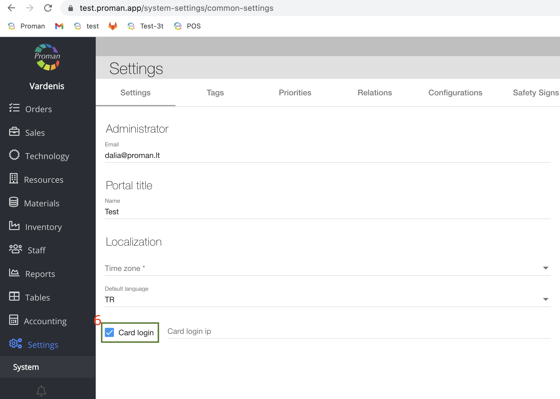 6. Switch on possibility to login with card: