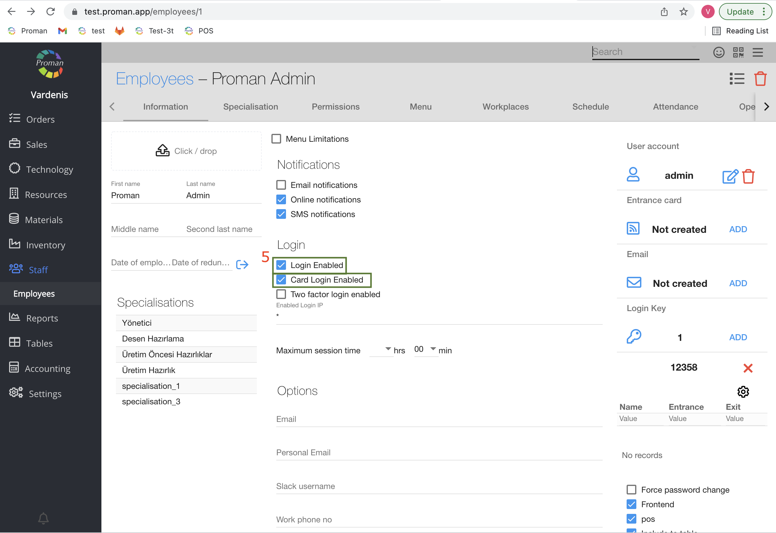 1. In Employee Information Notifications, check on "Face login Enable";