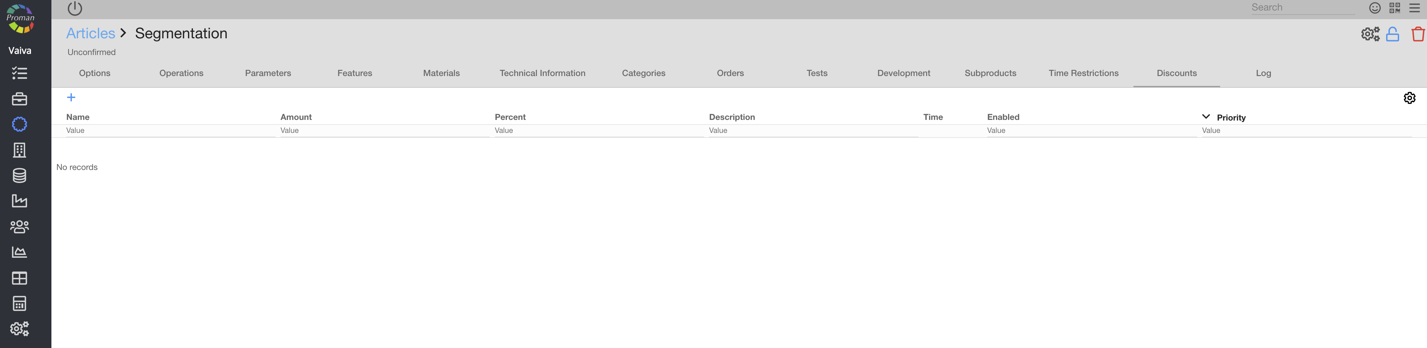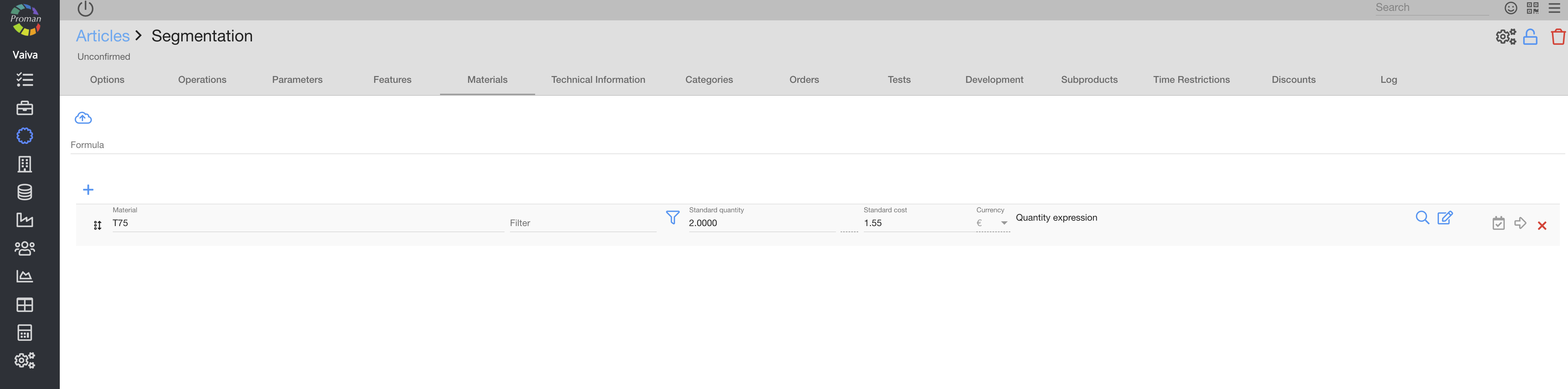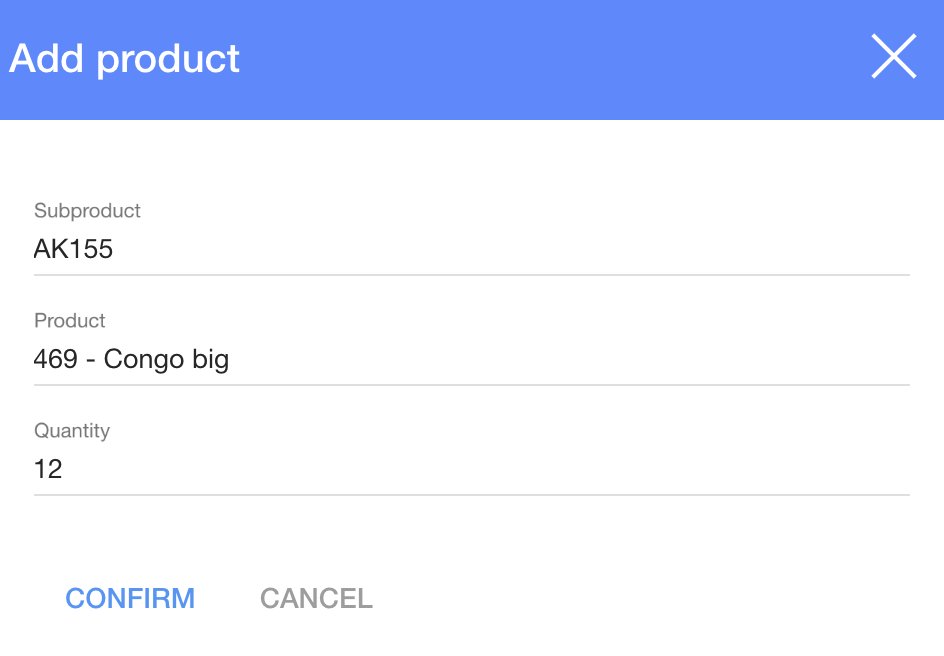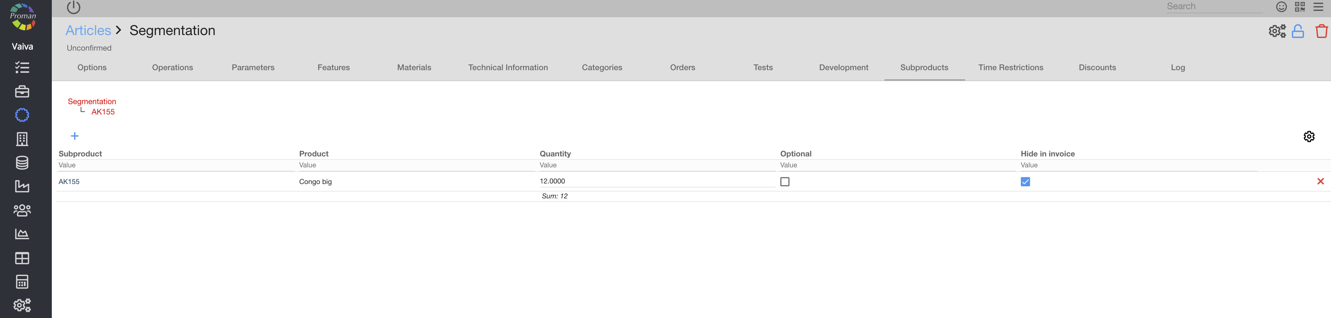 2. Choose a subproduct from the subproduct list (system takes the information from the article);