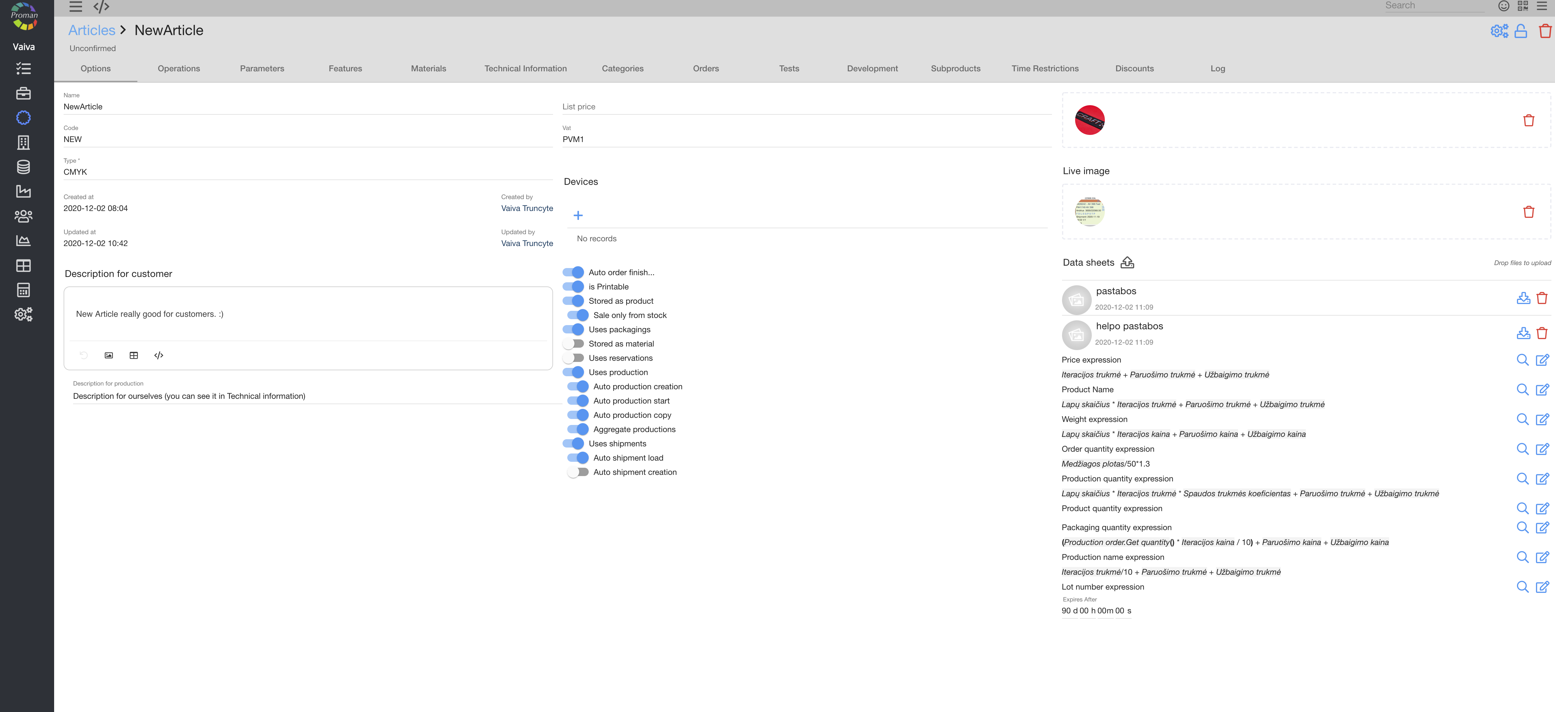 | You can confirm the Article (When you lock Article: 1. you can see it in product list; 2. nobody can change anything (you can order it only if it is locked)) | |