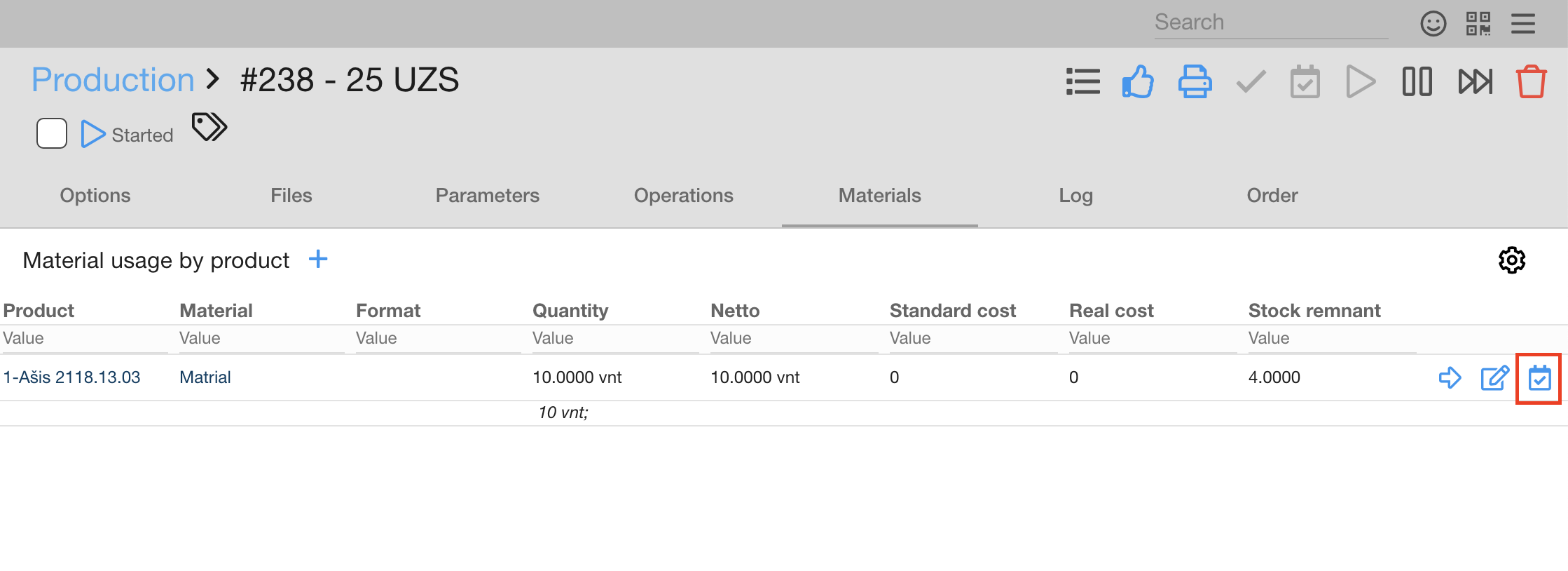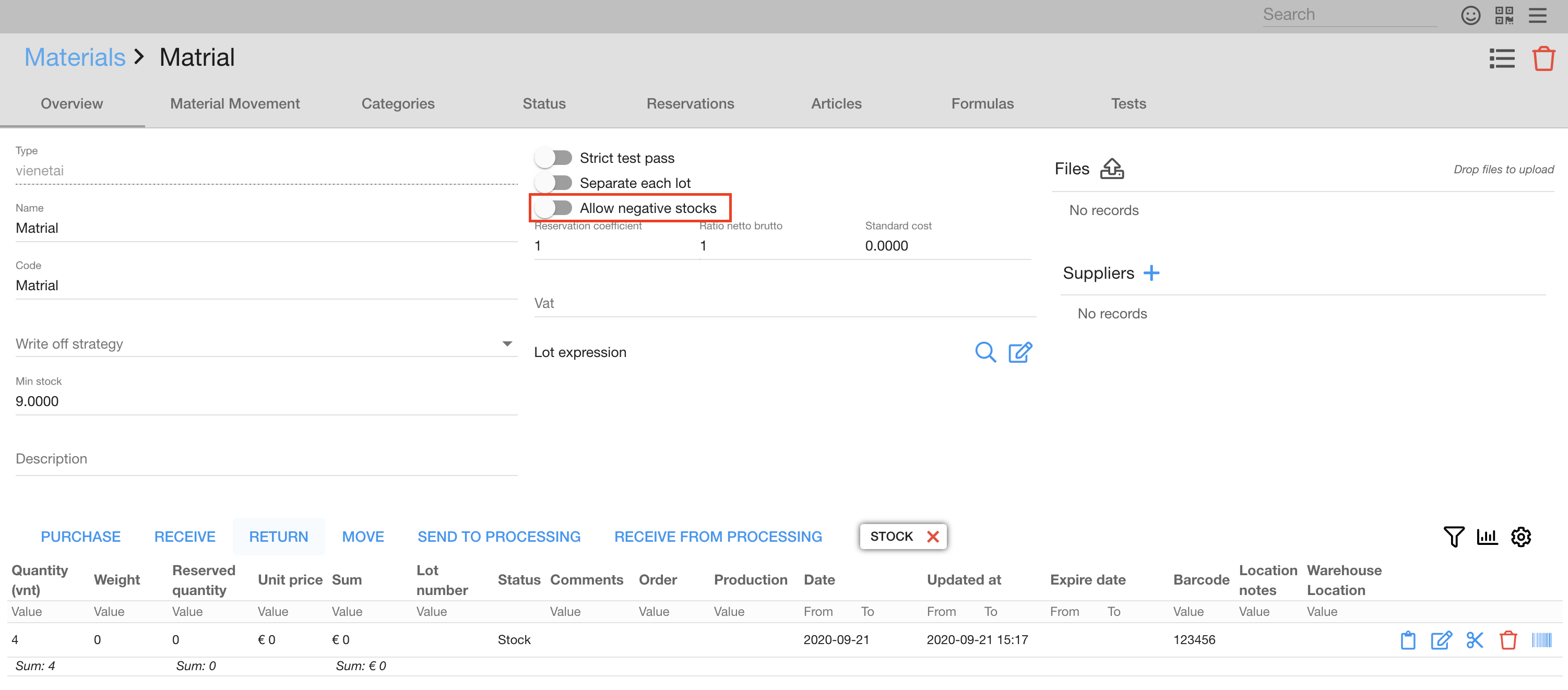 If the negative quantity of the material is turned off