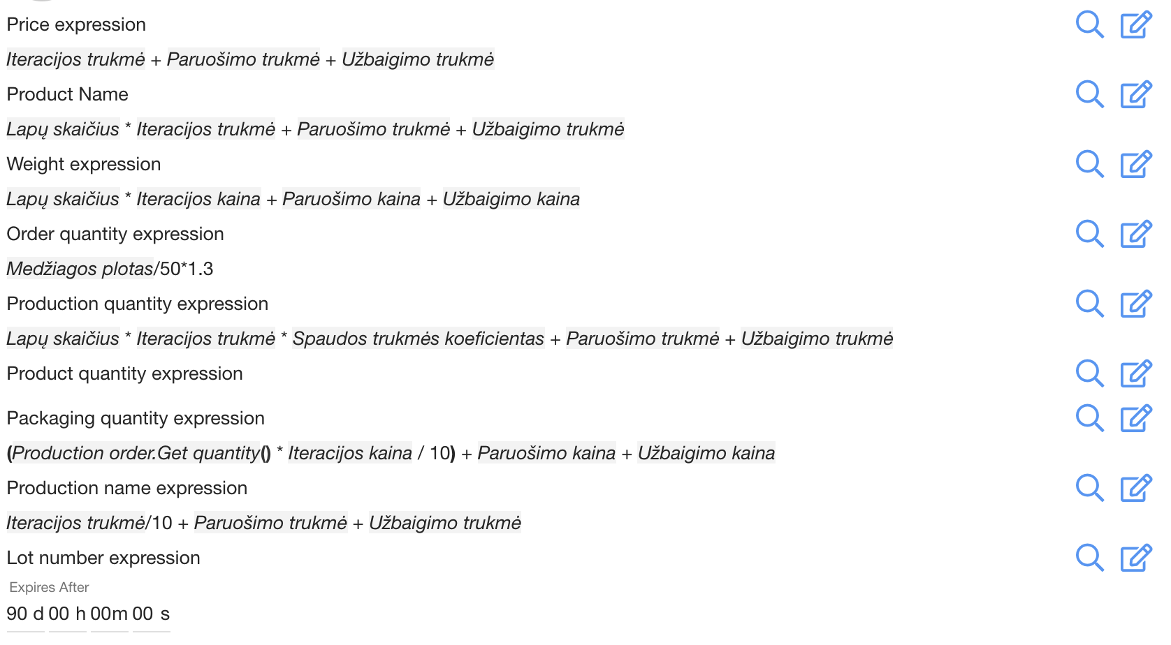 | How to copy production operations? |
