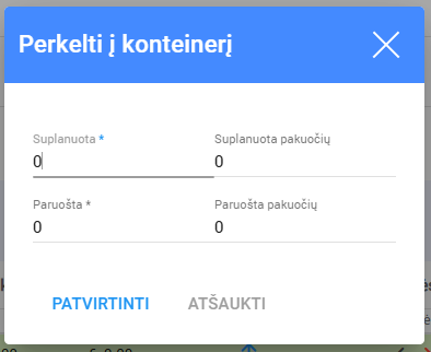 | Kaip perkelti produktus į siuntimo konteinerio vadovą? |