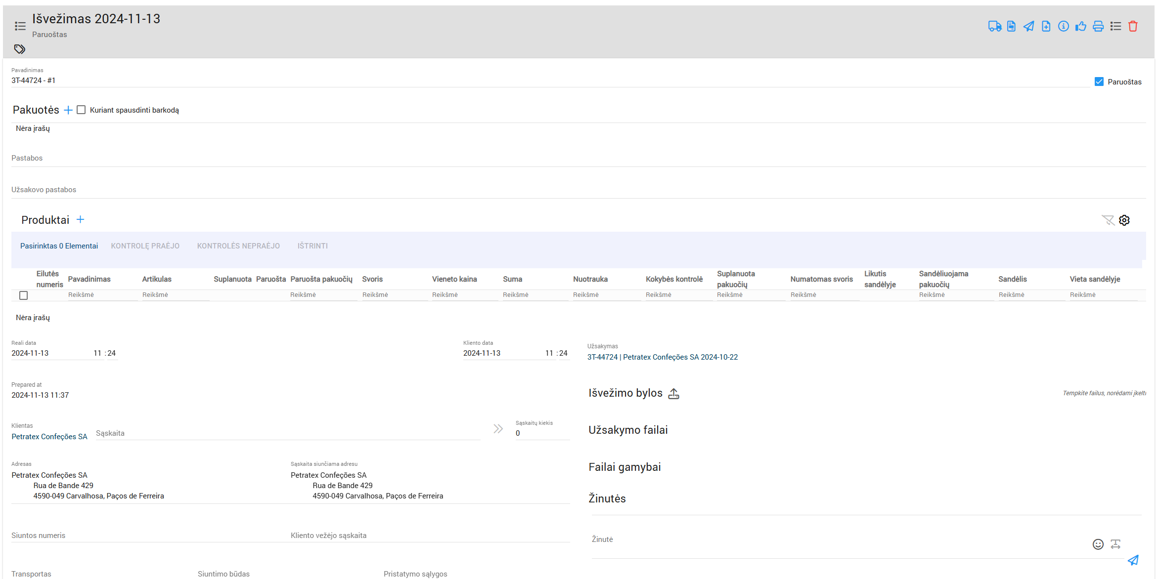Dabar galėtumėte išsiųsti siuntos konteinerį