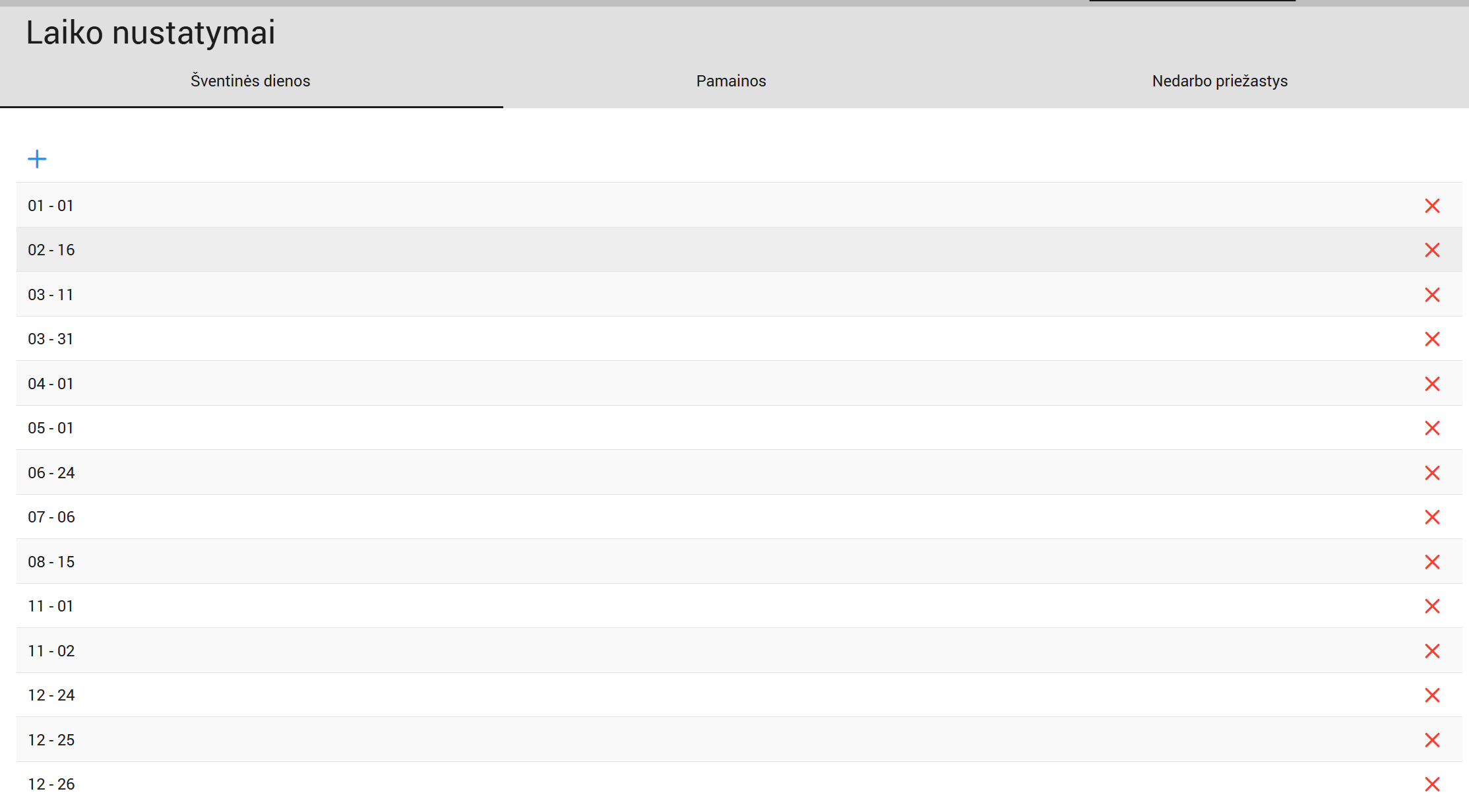 Laiko parinktys yra išteklių nustatymai. Čia mes galime apibrėžti išteklių prieinamumo išimtis, tokias kaip atostogos, darbo pamainos ir kitos darbo dienos išimtys. Tada ši informacija naudojama visuose kituose procesuose planuojant išteklius gamybai ir kitoms užduotims atlikti.