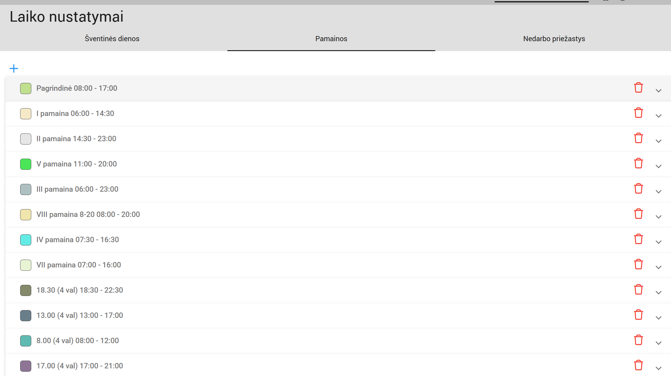 ) darbo pamainas. Darbo pamainos yra laiko parametrų rinkinys, apibrėžiantis, kada yra išteklių, priskirtų šiai darbo pamainai. Šis prieinamumas tada naudojamas planuojant gamybą, kad jį būtų galima apibrėžti, kada yra tinkamas laiko tarpas. Galite tai pamatyti ->