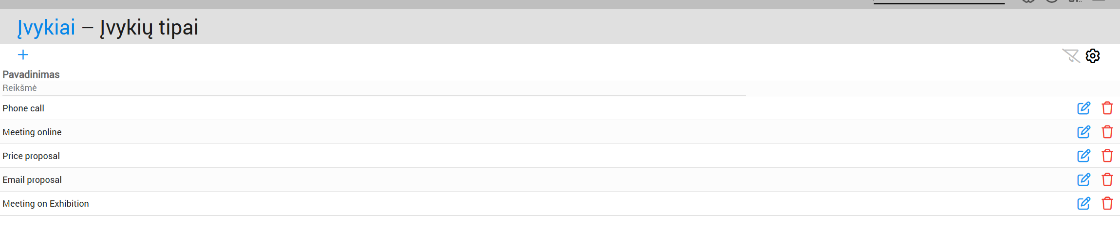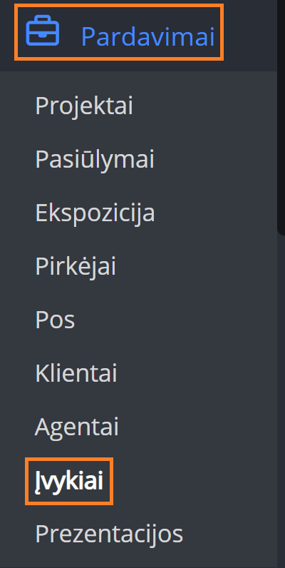 2.2. Pasirinkime pardavimų įvykių tipą iš pardavimo įvykių tipų sąrašo: