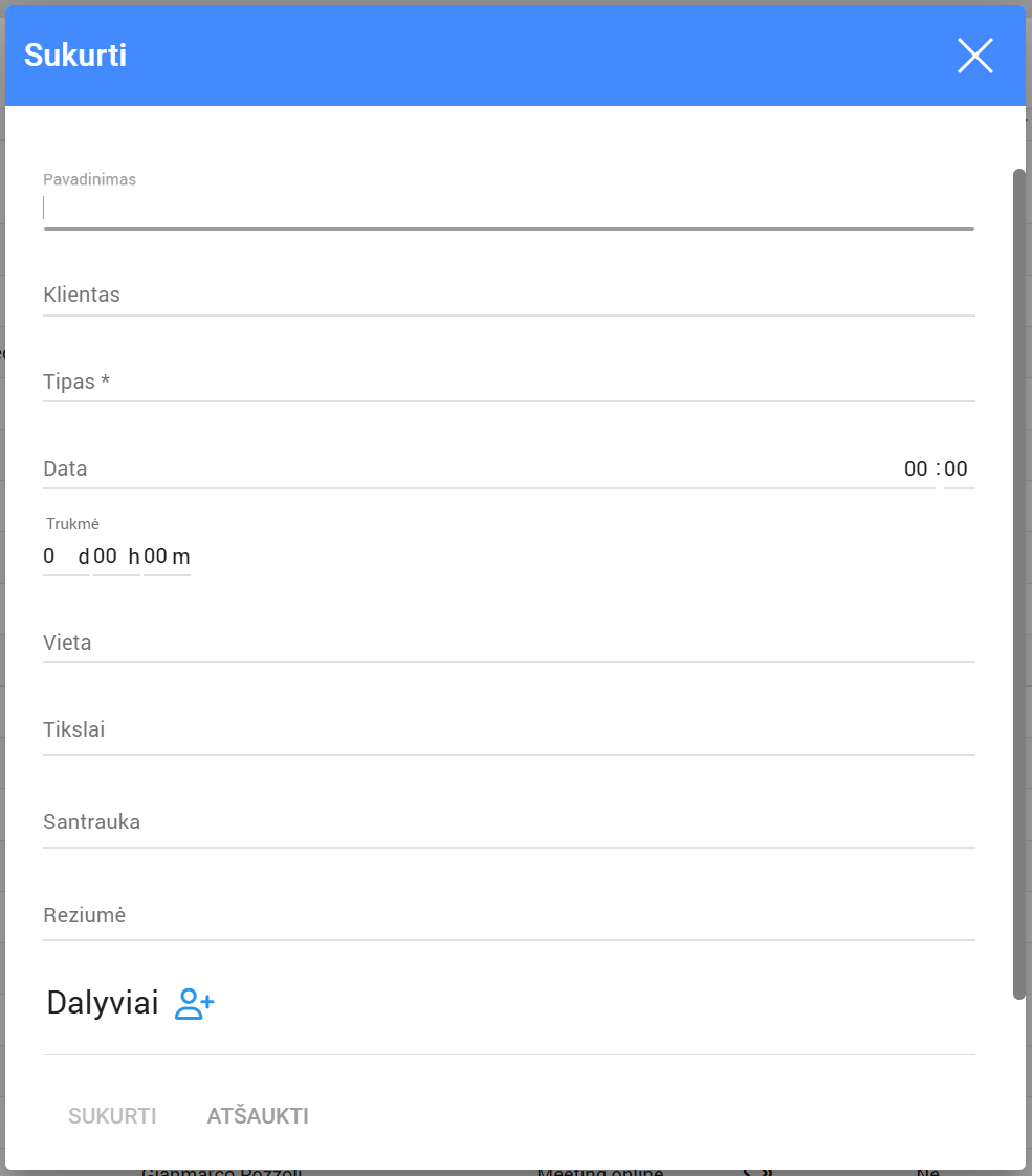 Čia galima įvesti informaciją apie pardavimo įvykį