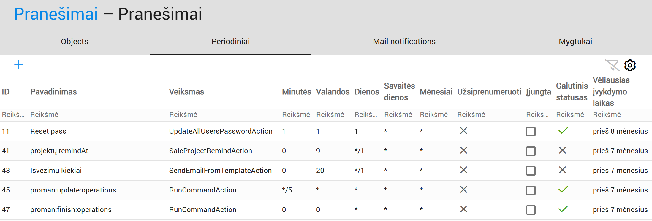 Dabar galite pamatyti pranešimų sąrašą (objektai):