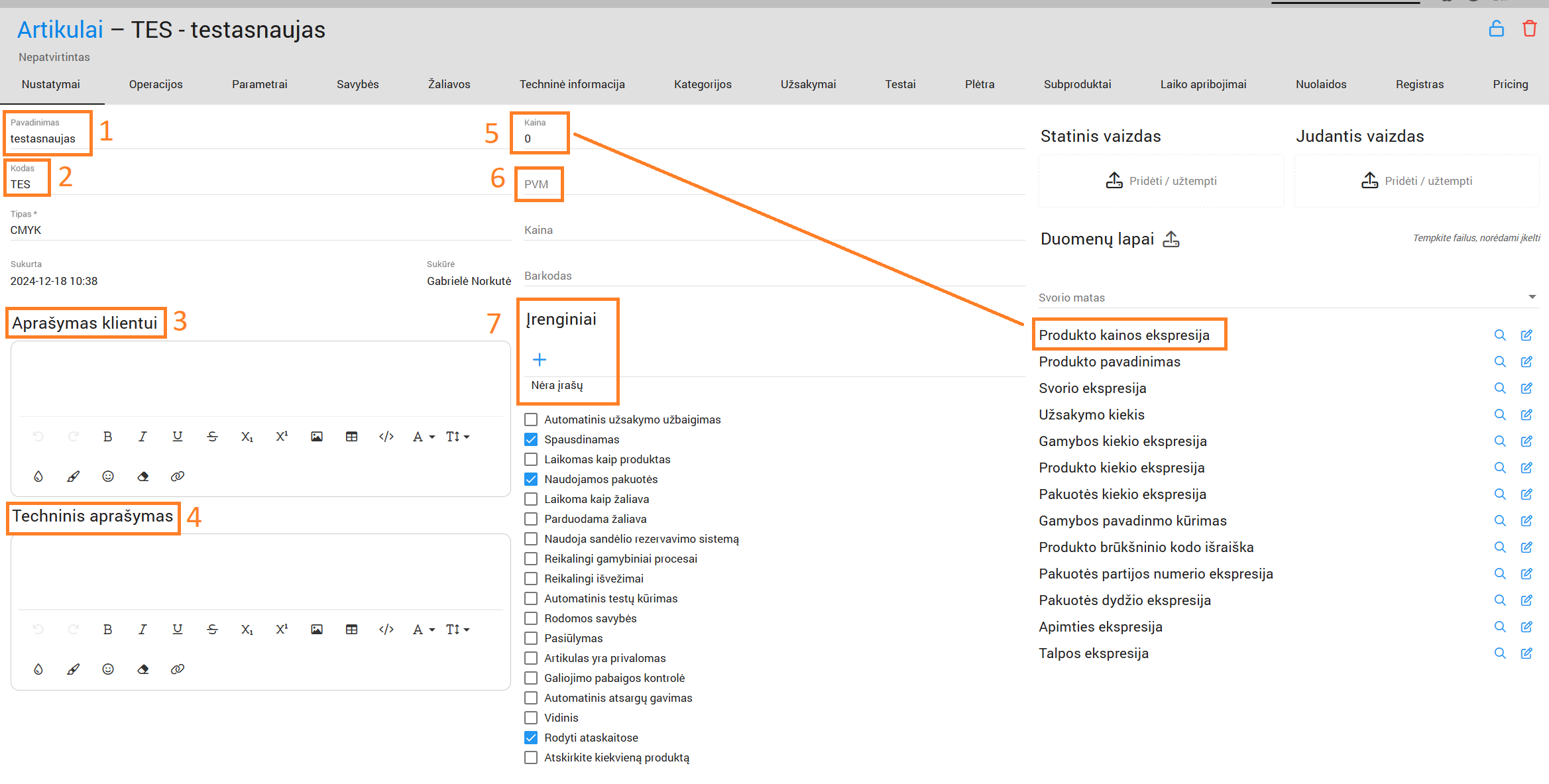 4. Įvesti gamybos aprašymą;